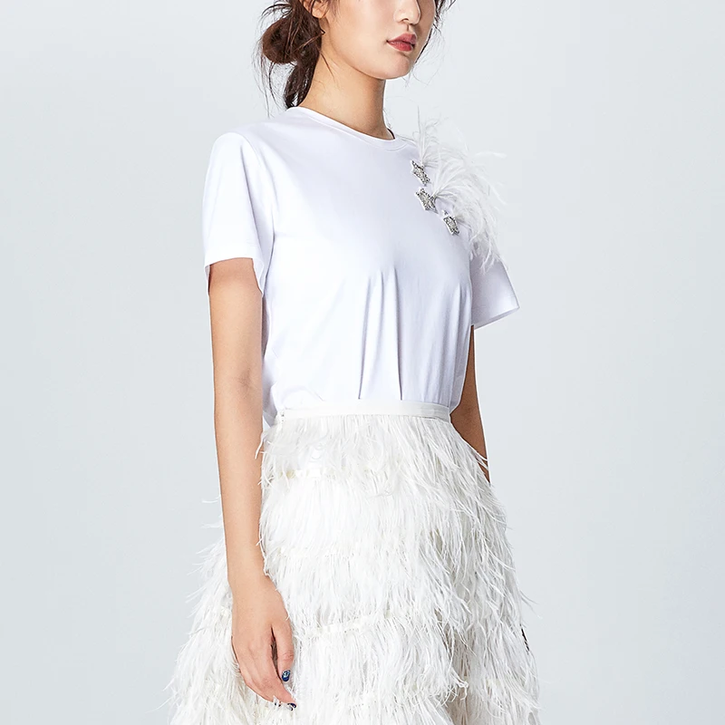 Отделка из страусиных перьев для юбки, 1 метр, 8-10 см, белые страу...
