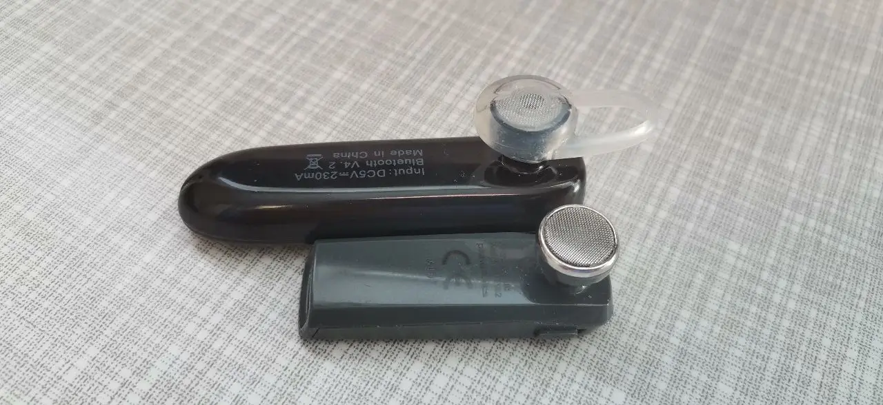 Доставка 2 месяца(долго по Китаю каталась). Качество звука (я слышу и меня) хорошее! Корпус где динамик оказался треснутый (на 1 и 2 фото видно). Гарнитура большая и тяжелая (на 3 фото видно для сравнения), плохо без душки держится, поставил со старой гарнитуры силиконовый вкладыш(на 3 фото), с ним уже лучше.