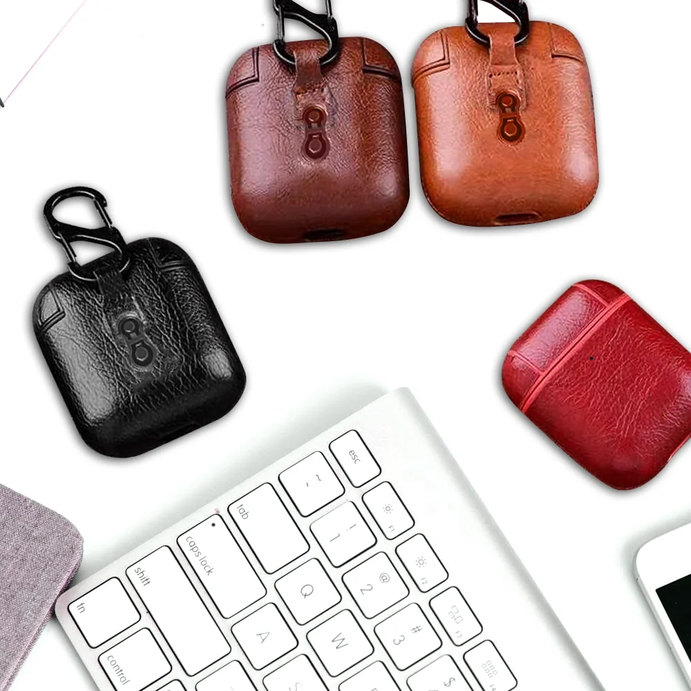 Кожаный чехол для наушников Airpods 1 и 2 Pro с ремешком и кнопками, кожаный чехол для наушников airpods, аксессуары без наушников