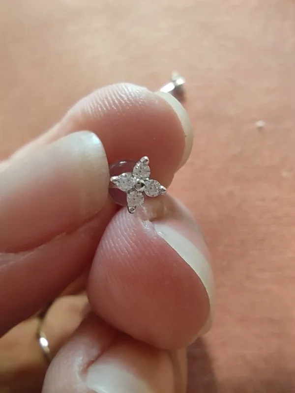 Chegou rápido e o vendedor é muito eficiente. a jóia veio levemente amassada e a tarracha é de plástico. não funciona bem como piercing (helix), mas como brinco normal é ok.