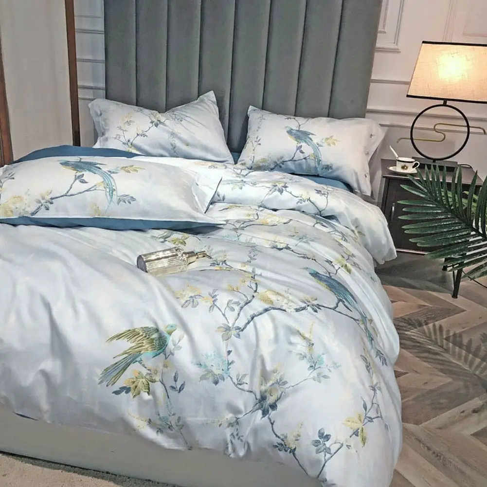 Комплект постельного белья Svetanya из сатина и египетского хлопка с изображением золотых пасторальных птиц, постельное белье большого размера, пододеяльник на резинке
