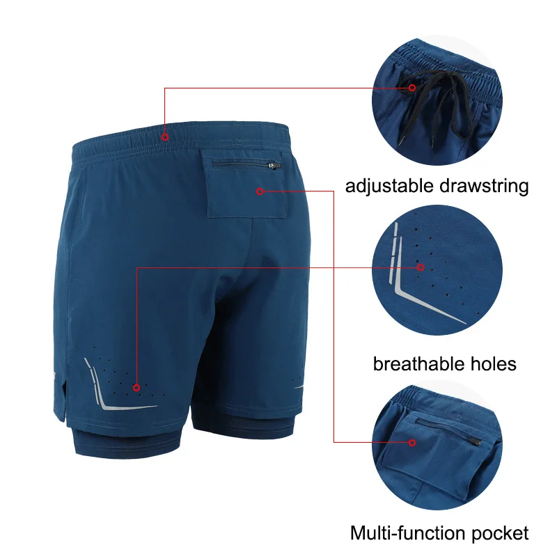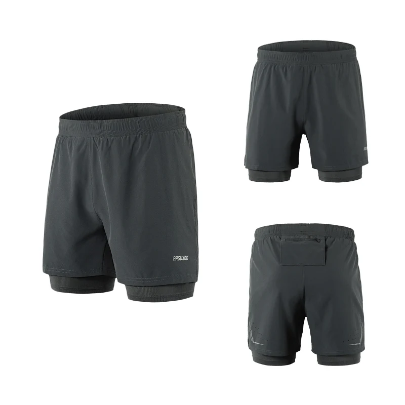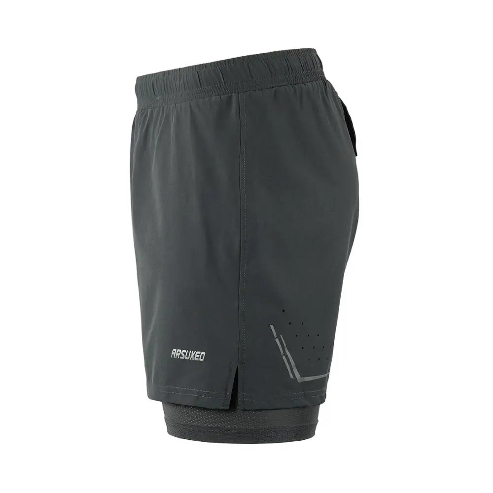 Мужские шорты для бега ARSUXEO, быстросохнущие, светоотражающие, 2 в 1