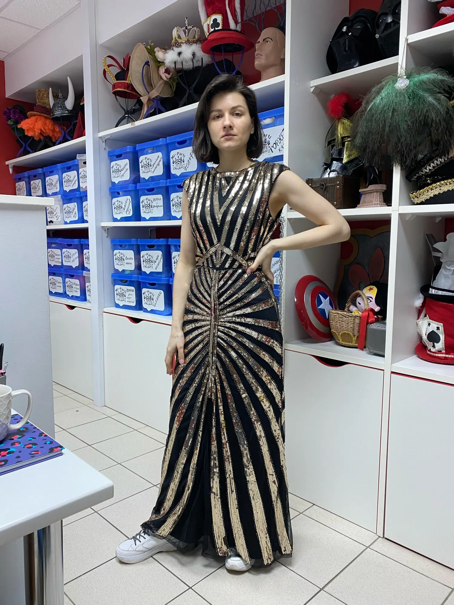 Женское длинное платье в стиле Гэтсби, винтажное Макси Вечерние с круглым вырезом, без рукавов, с открытой спиной, для выпускного вечера, 1920