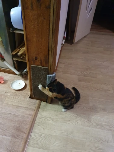 Товар соответствует описанию. Коту понравился. Крепится на скотч или шурупы на выбор. Легко снимается верхняя часть, чтобы насыпать траву для привлечения внимания кота. Правда я не насыпала, так как во время перевозки запах немного впитался в саму расческу и кот сам приходил, нюхал , терся и чихал. Не знаю насколько это безопасно, кот дуреет от этого запаха. Стоит пользоваться с осторожностью. Сама расческа класс!