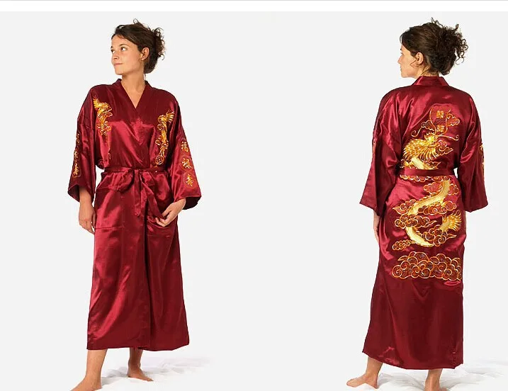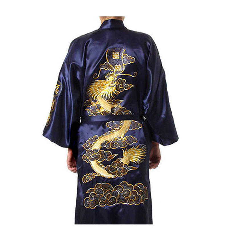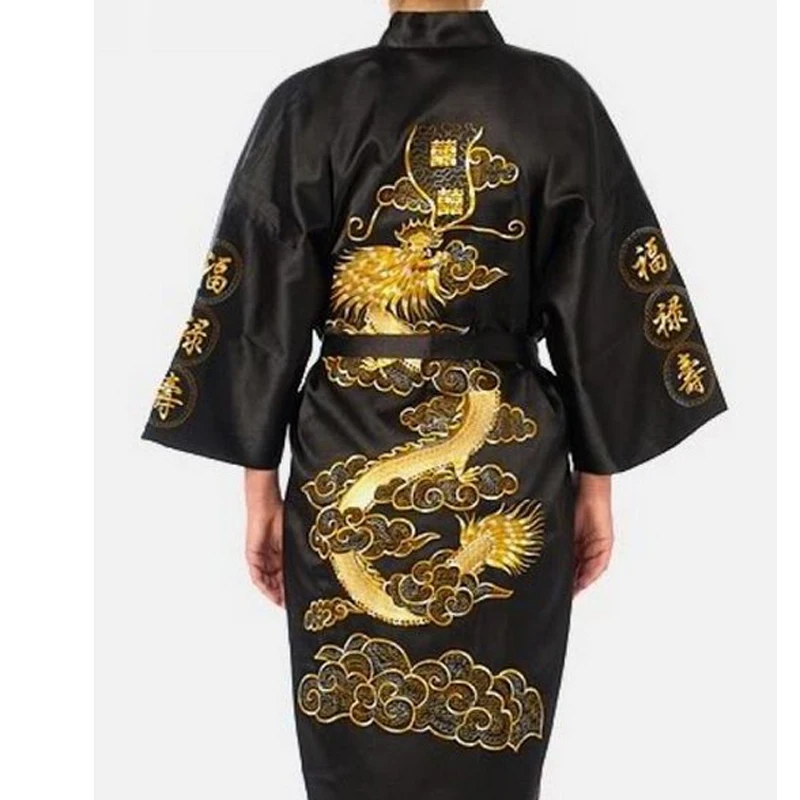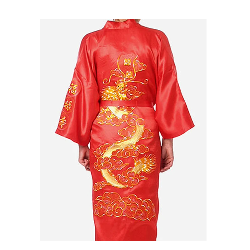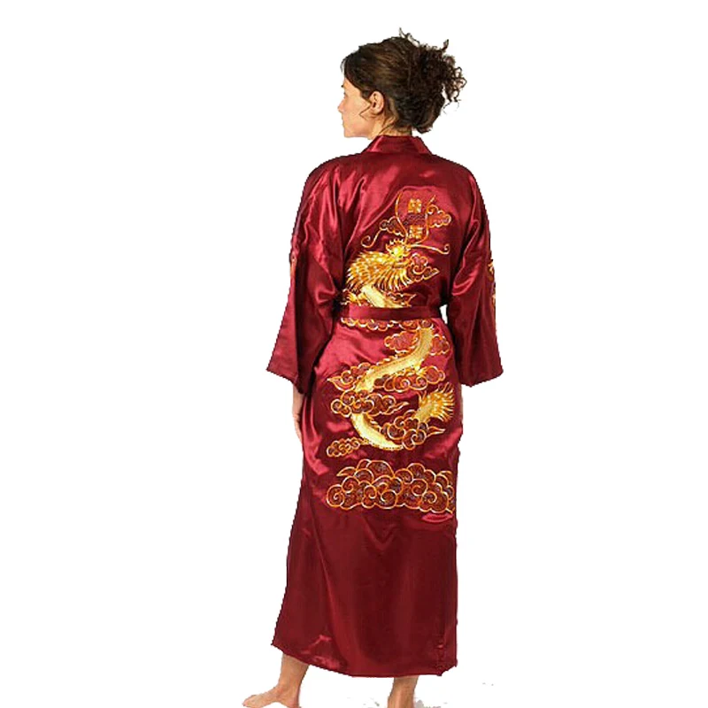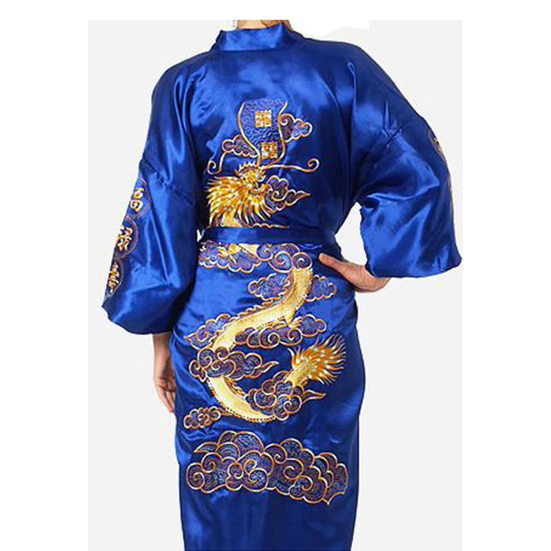Женский Атласный халат, с вышивкой в виде дракона, Размеры S M L XL XXL XXXL
