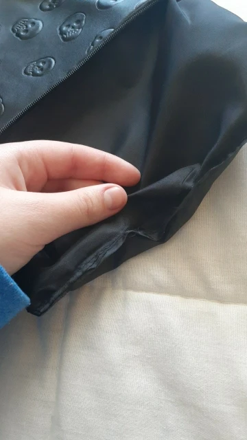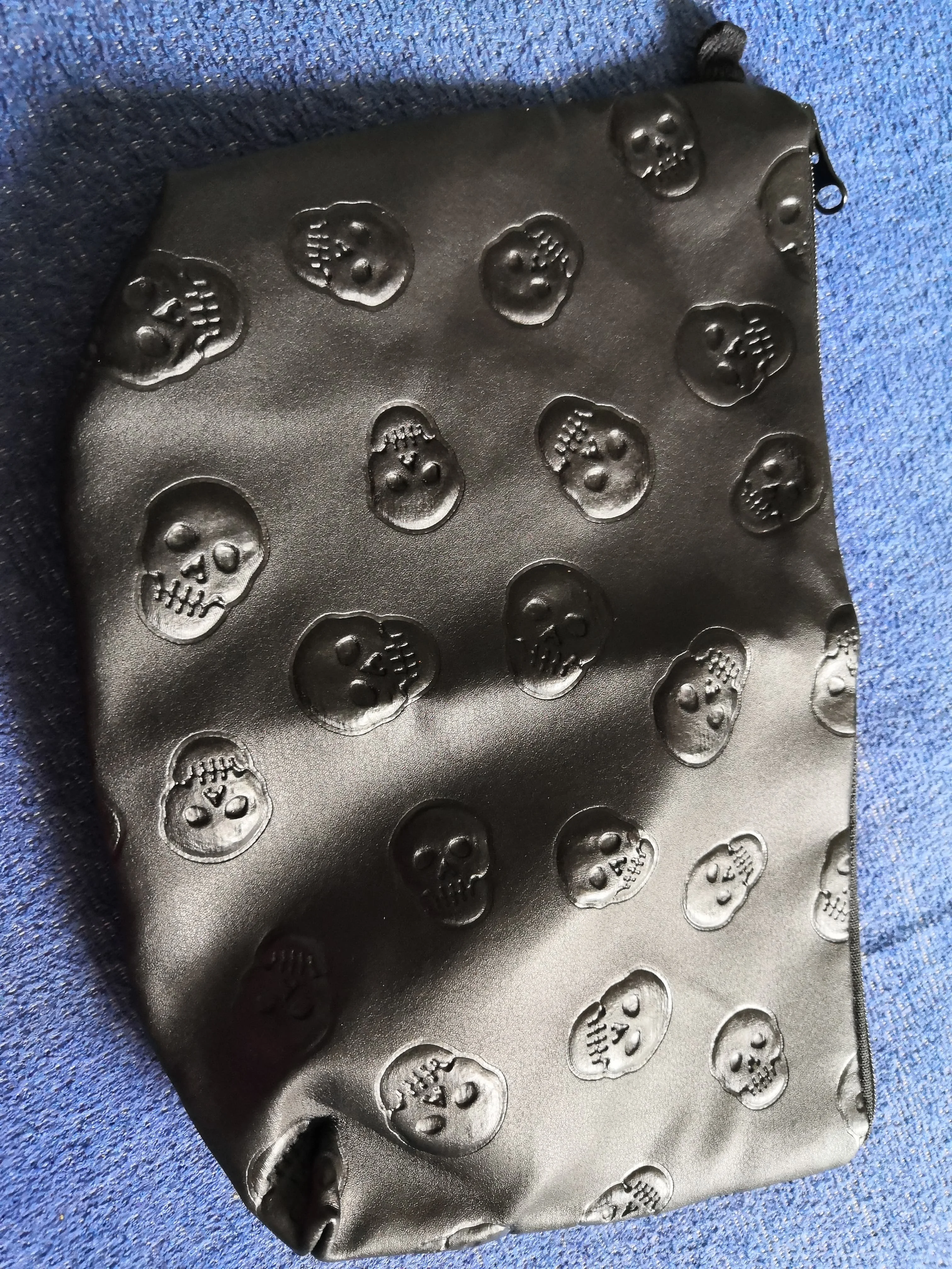 заказывала 04.10, приехал 30.11 в МО. увидев размер посылки, очень испугалась. как оказалось косметичка была сложена вдвое. вроде как, линии сгиба не видно, когда я положила туда вещи. заказывала как пенал для школы. очень вместительный. немного огорчили черепа, все таки на фото они по детальнее, но я перед заказом насмотрелась кучу отзывов, тк что было ожидаемо. все понравилось. рекомендую. спасибо!