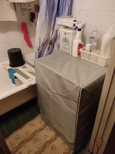 Особенности: Серебряное покрытие на полиэфирной ткани, стойкое к старению, хорошо влияет на отражение солнечного света. Водонепроницаемость и защита от пыли. Если ваша стиральная машина находится на балконе, она очень подходит. Не нужно снимать крышку при работе стиральной машины. Без крышки на задней и нижней части, для электрического провода и водопровода.