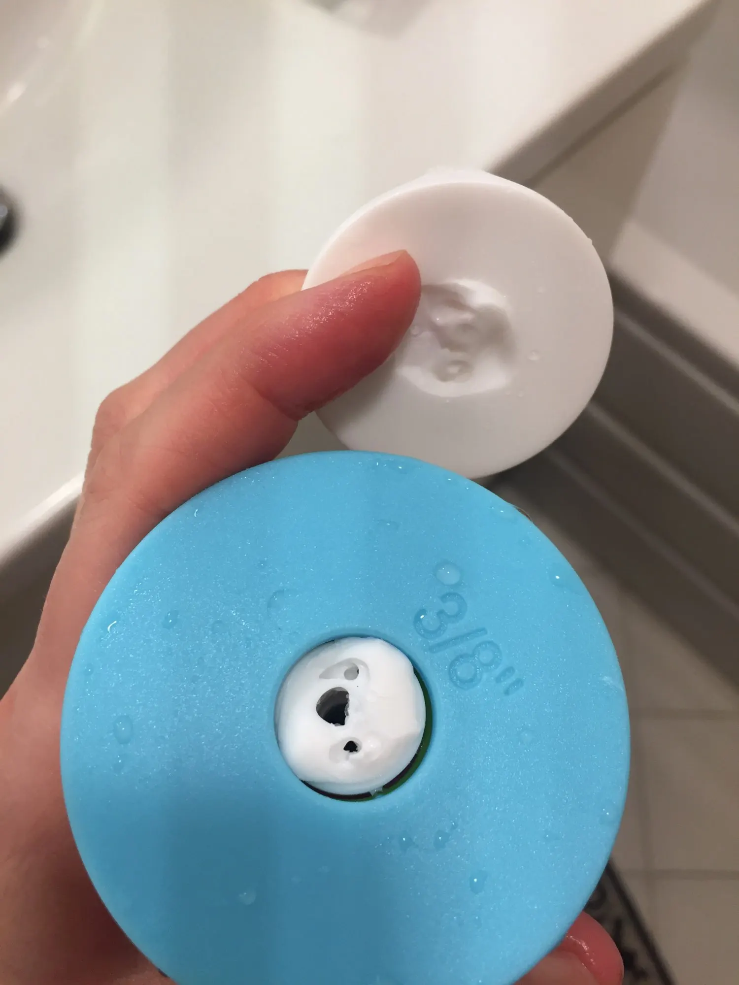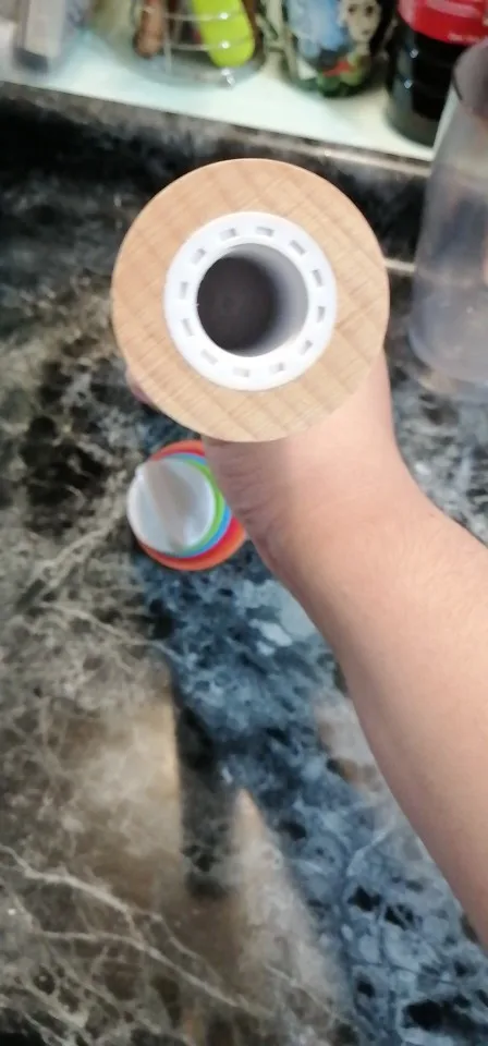 Ролик имеет некоторые трещины древесины. И колпачки не хорошо отрегулированы от мерки, которая маркирует шайбы по бокам.