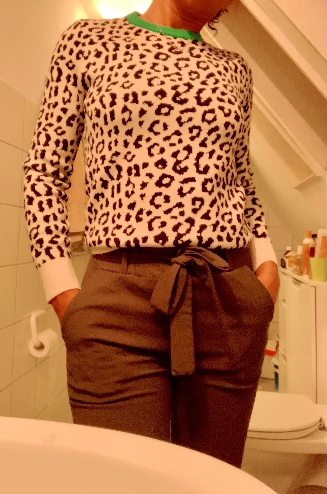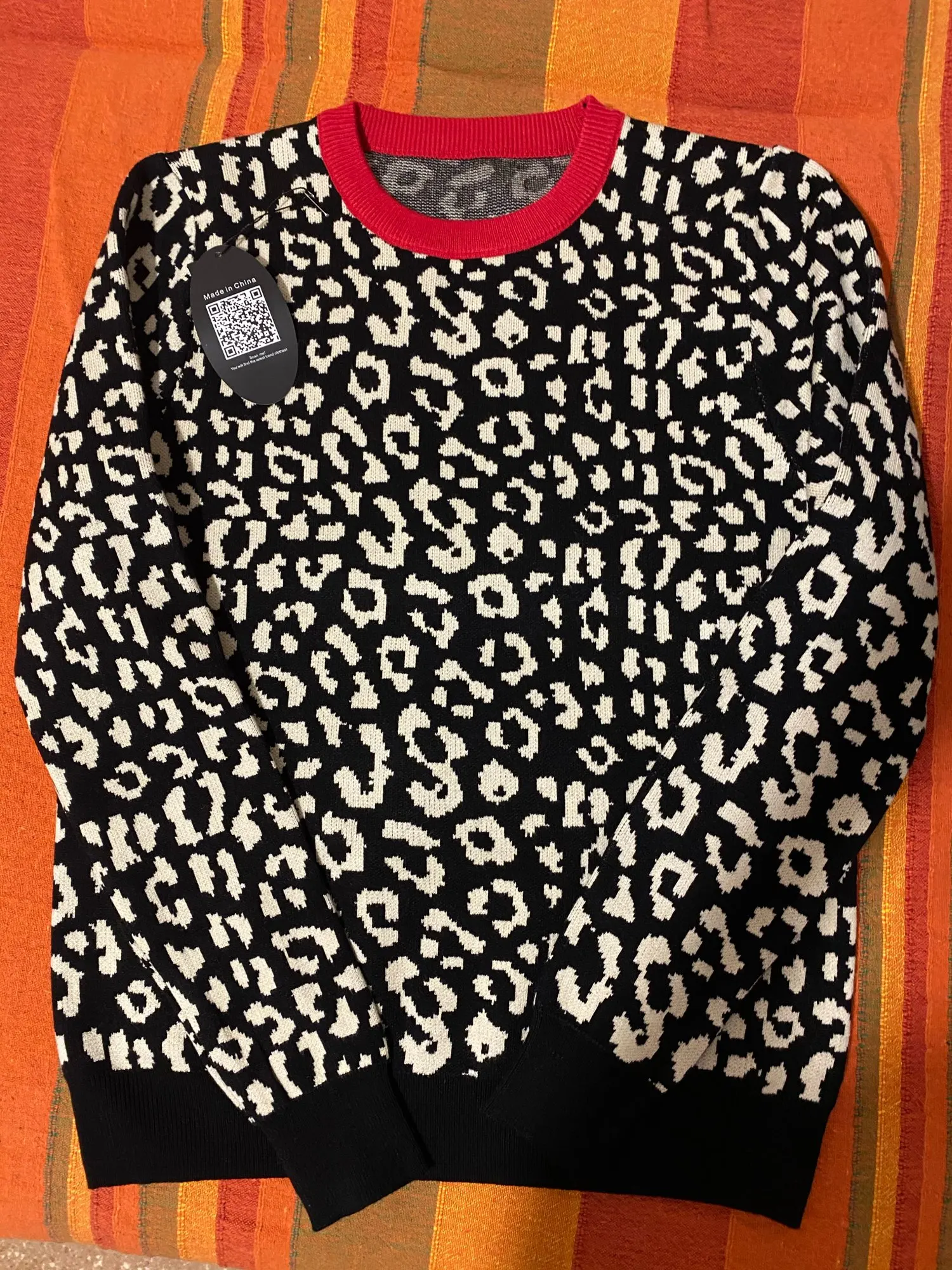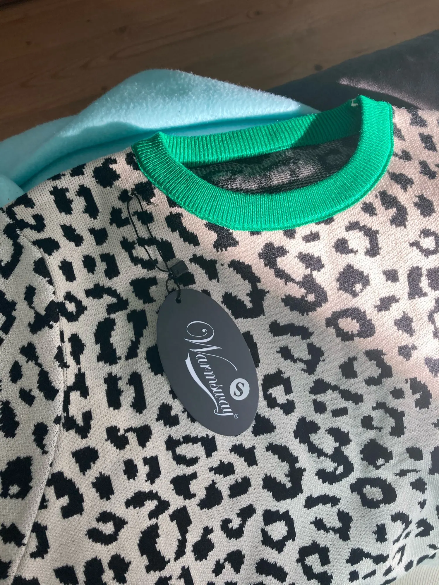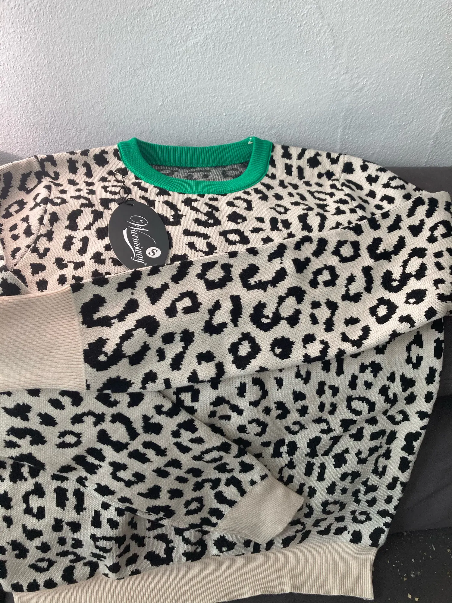 Свитер очень клёвый - качество материала просто огонь - гладкий, сияет. Хочется гладить и гладит. Зелёный воротник очень освежает леопардовый принт и даёт новые возможности для сочетания с другими вещами в гардеробе. На ОГ 78 ОТ 65 ОБ 87 и рост 165 S подошёл в самый раз. По длине рукава - отворот делаю, так что запас на рост до 175 точно. Длина отличная - до середины бедра: можно на выпуск носить, или заправить без большого комка изнутри. Швы ровные, зацепок по ткани нет. Однозначно оставлю! Рекомендую продавца - качество на высоте, отправка быстрая - 10 дней в Краснодар, упаковка - все целое!