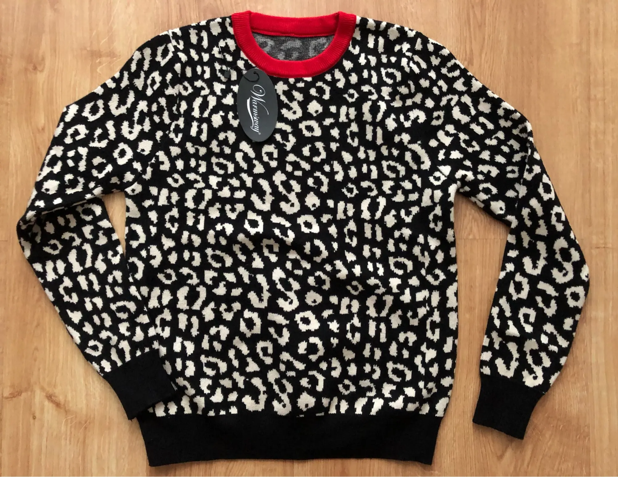 Свитер женский трикотажный, с леопардовым принтом, с длинным рукавом