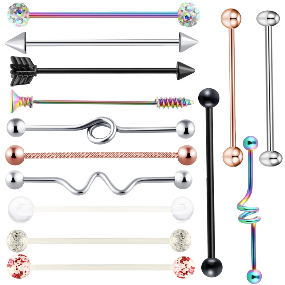 Промышленные серьги TIANCIFBYJS 14 г, штанги из нержавеющей стали, спиральный пирсинг для пупка, прямой стержень, хрящ для женщин, мужчин, 1 шт.