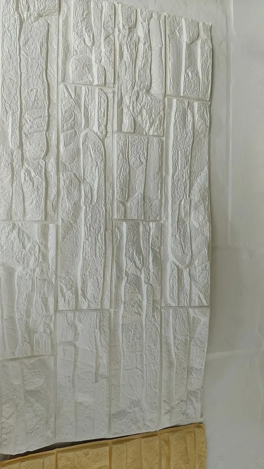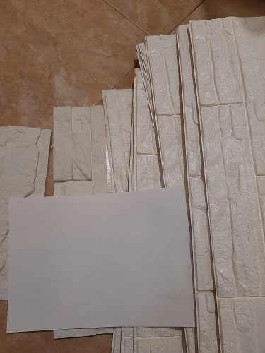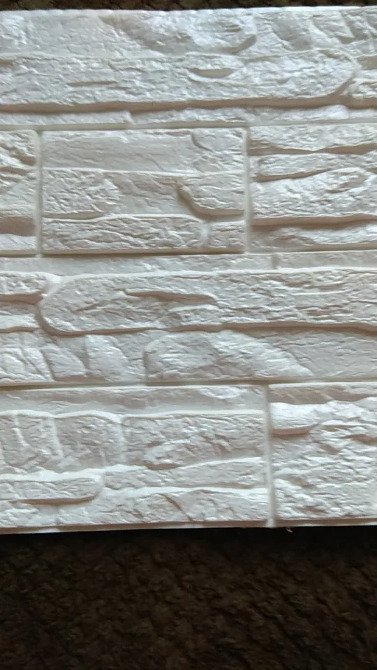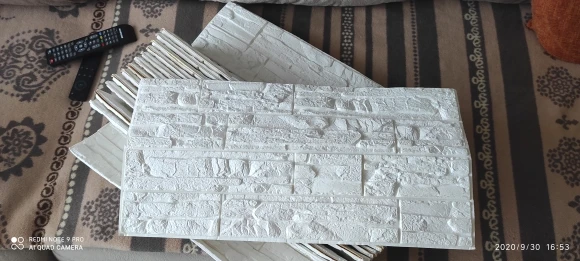 Отличный товар.Очень хорошо упакован.Панели сложены правильно,вдоль сгиба. До покупки насмотрелась много отзывов про других продавцов.Многие складывают пополам,что очень портит вид. Товар очень качественный, мягкий,край "кирпичика" толстенький,запаха нет совсем.Липкий слой надежный. Особо отмечу работу продавца.Очень доброжелателен,приветлив. После оформления первого заказа дал скидку в 5$ на следующий,чем сразу и воспользовалась. Товар отправил несколькими партиями,разделил по количеству для удобства транспортировки.Заказ оформлен 23.11 получен 12.12. в столицу самой западной области РФ.Доставка до дверей курьером EMS Почты России. Для понимания белого цвета рядом фото листА4 белый и кусок гипсовой штукатурки. P.S.Совет в выборе размера панели.Считаю,что этот удобней в наклеивании,чем большой. При смещении легче исправить косяки.