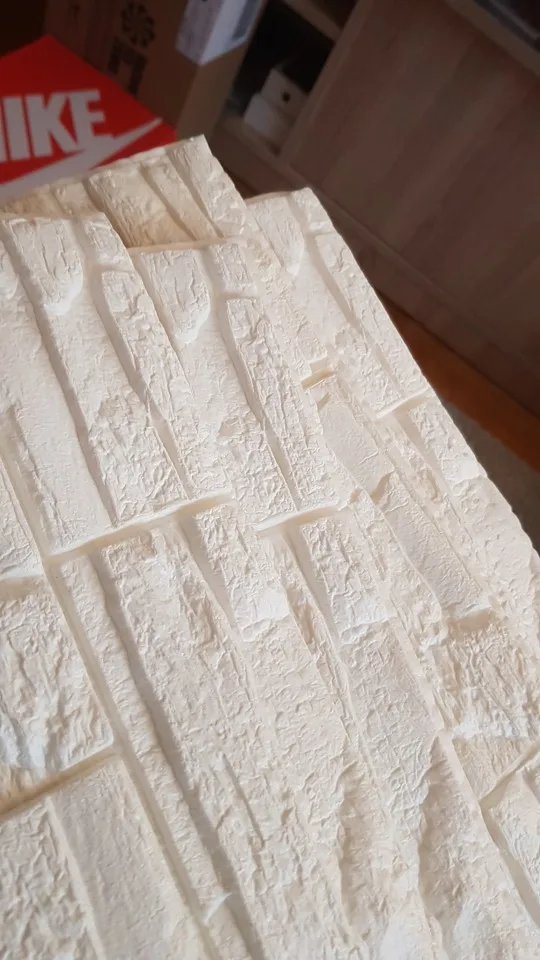Наконец-то пришли мои панели. Долго шли, но главное пришли. Выглядят прикольно. Помяты конечно, но из-за структуры равного камня не сильно заметно, на то был и расчёт. Пока не клеила и не могу сказать как оно будет потом дополню отзыв. Пока всё нравится.
