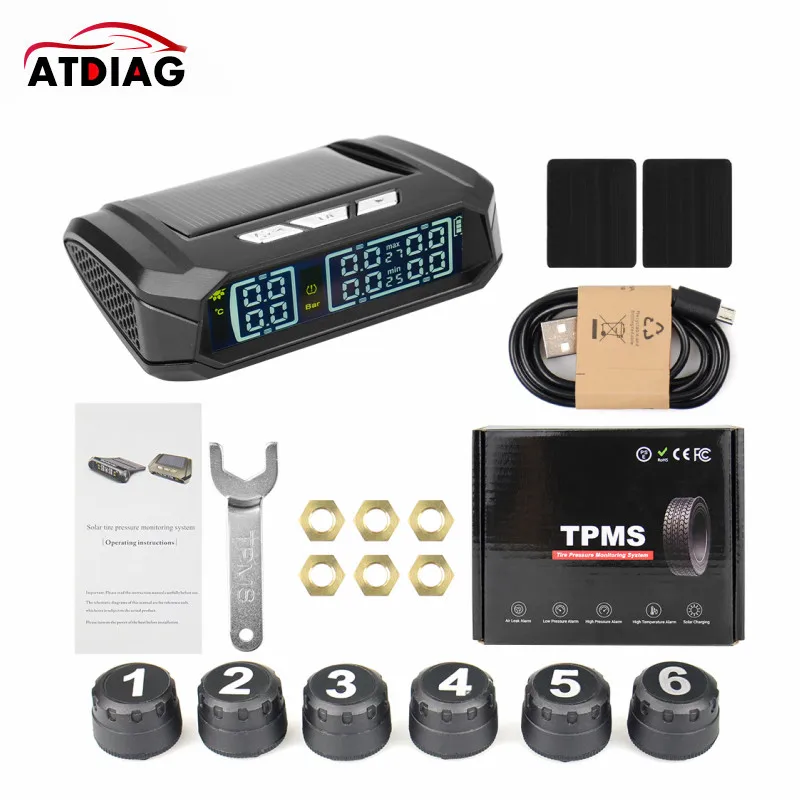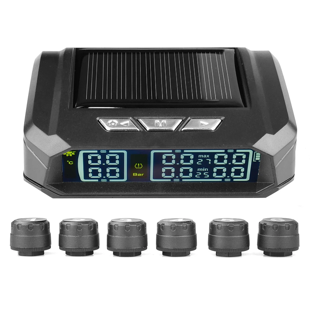 Внешняя система мониторинга давления в шинах TPMS для грузовиков, автоматический дисплей, мониторинг давления в шинах с сигнализацией, USB-зарядка, оповещение о температуре с 6 датчиками