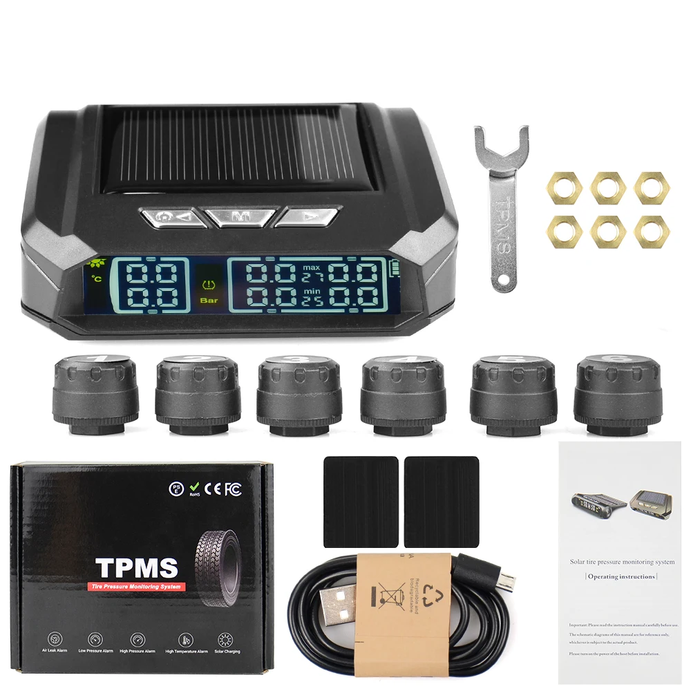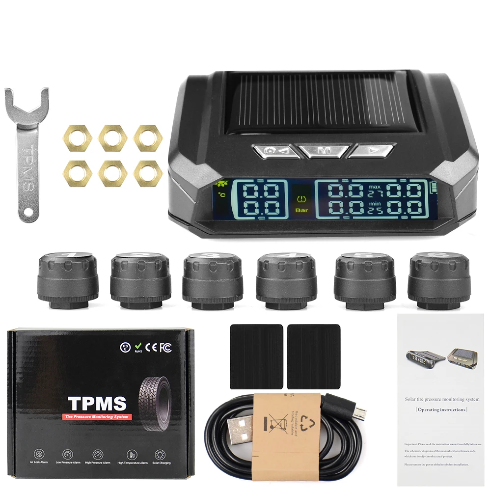 Внешняя система контроля давления в шинах TPMS для грузовиков, автоматический дисплей, сигнализация, мониторинг, зарядка через USB, оповещение о температуре с 6 датчиками