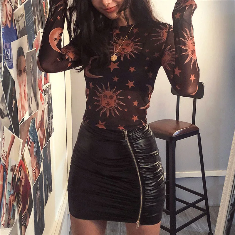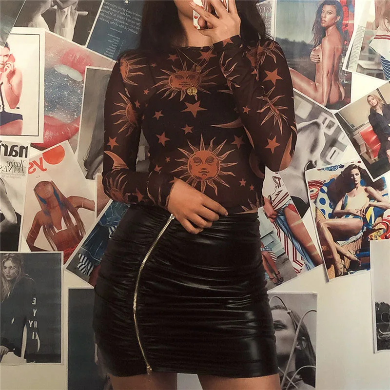 Футболка женская с принтом Sun Moon, прозрачная сетчатая пикантная ...