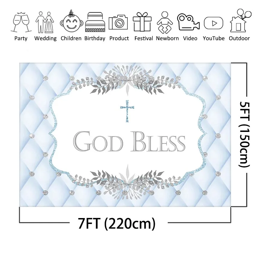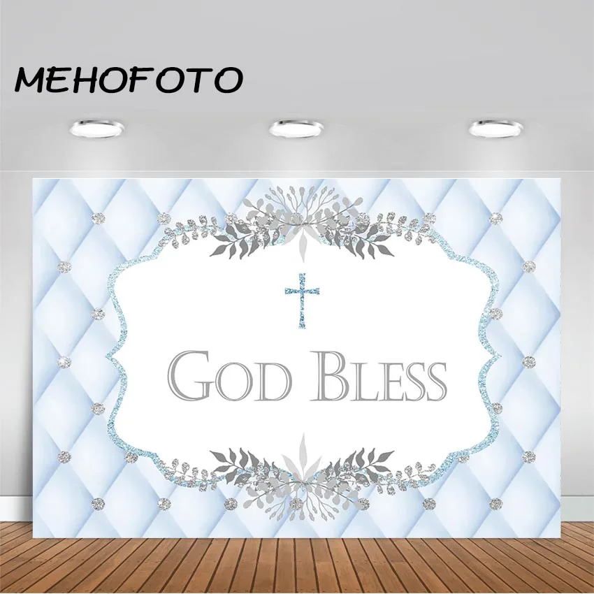 Фон для фотосъемки с изображением голубого изголовья кровати с изображением Бог благословит крестин фон для новорожденных мальчиков баннер для Первого Святого Причастия