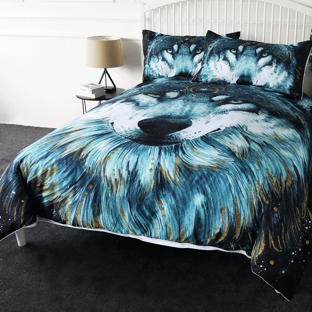 Постельное белье для девочки волк в темноте от Сканди, синее Золотое покрывало, роскошный комплект постельного белья с галактикой, покрывала с животными, королевский комплект из 3 предметов