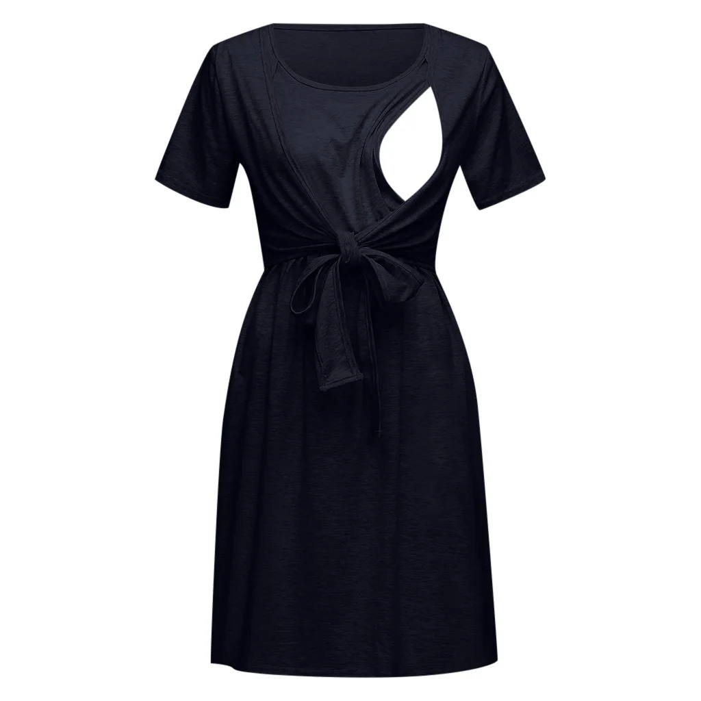 Элегантные платья для беременных и кормящих грудью, Пляжное Платье для грудного вскармливания, одежда для медсестер, платье с коротким рукавом