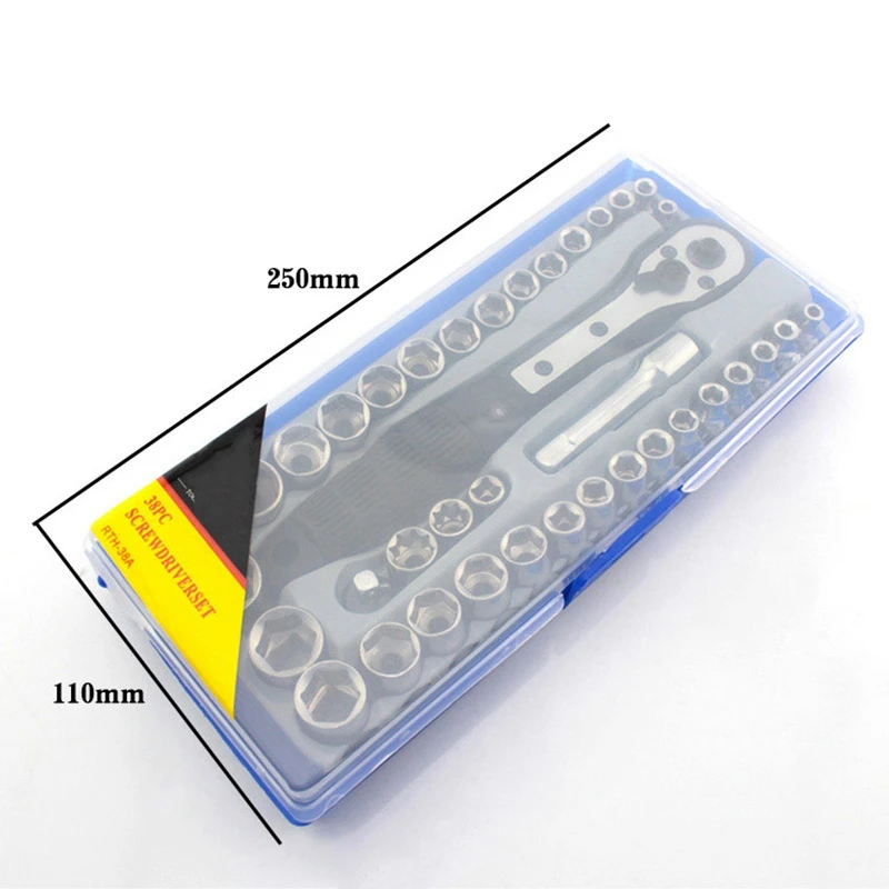 Набор торцевых ключей, динамометрический ключ, 38 дюймаметрический размер, с храповым механизмом дюйма, 38 в 1