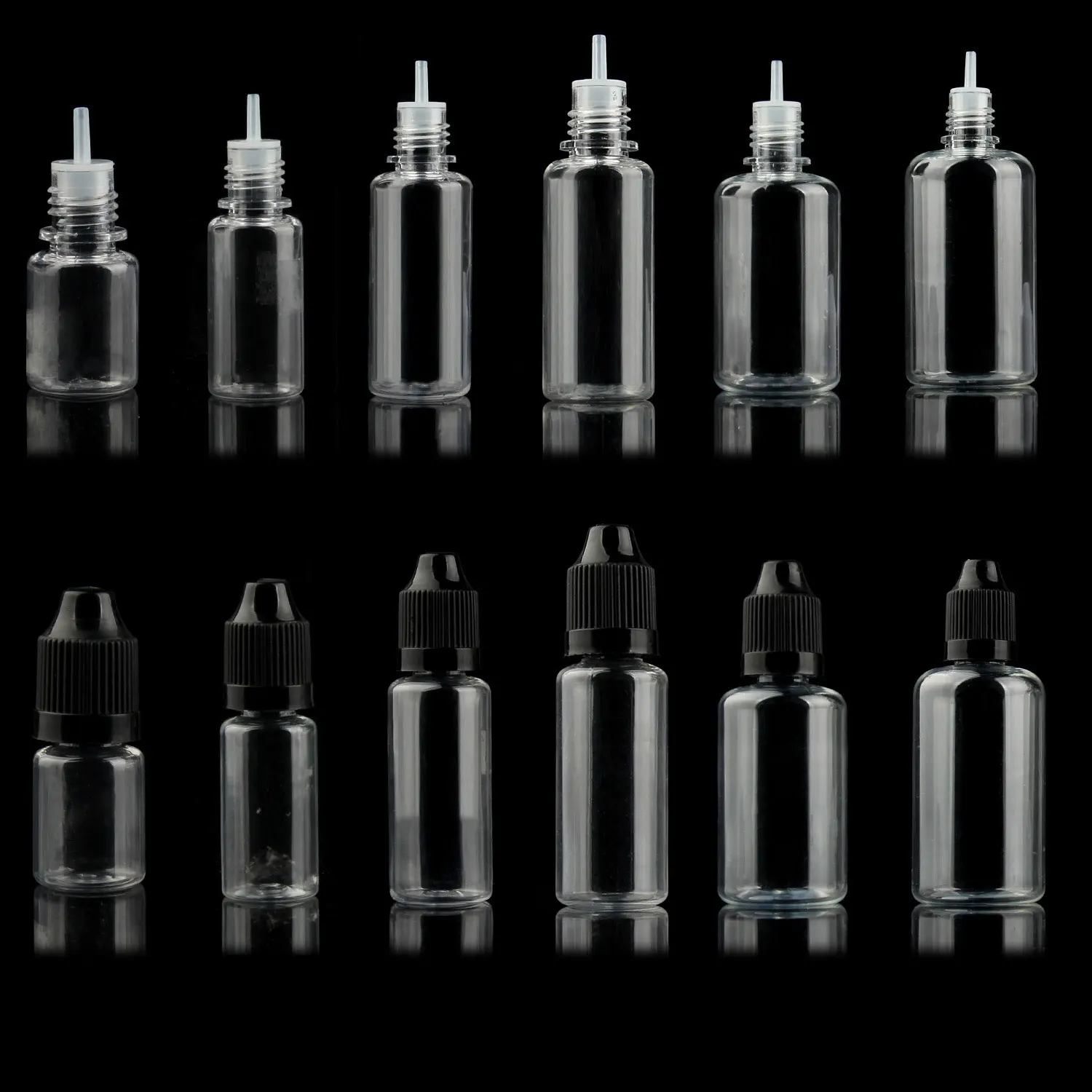 50 шт. X 5 мл-100 мл, бутылки для домашних животных, пустые пластиковые контейнеры для жидкости для сока, многоразовые контейнеры с черными крышками, наконечники пипетки