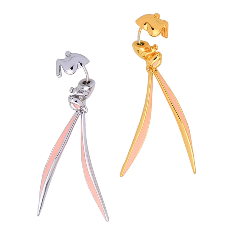 Item typeUnilateral Unique Two-tone Enamel Rabbit Ears Drop Earrings For Women