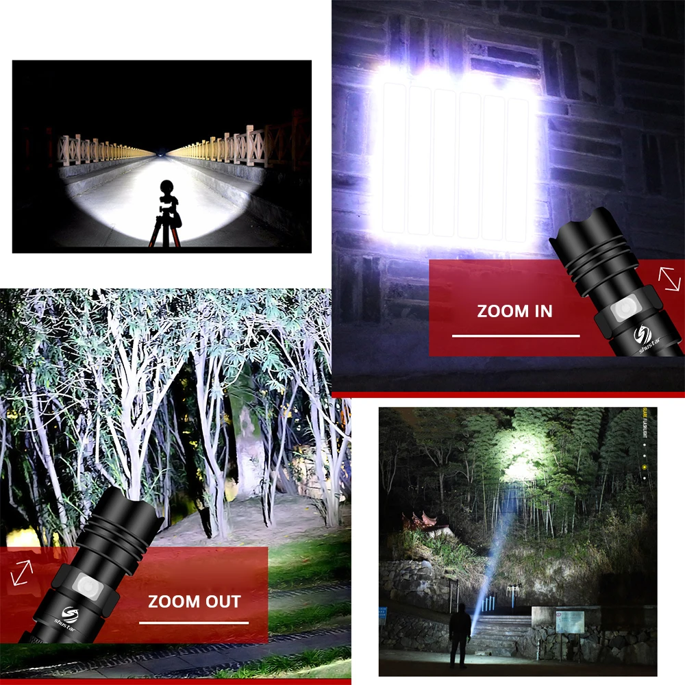 Суперъяркий тактический светодиодный фонарик с микро-зарядкой, поддержка зума, 5 режимов освещения, подходит для охоты, езды на велосипеде и т. д.