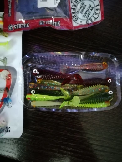 Товар шёл очень долго (2.5 месяца) уже думал, что данный товар не придёт. Упаковки не было, простой полиэтиленовый пакетик, запах химии присутствует, хоть немного, но есть. По мягкости среднячок. Есть прорезы для оффсетов. У рыбок, которые с глазками, имеется приятный атрактант креветки. С продавцом пытался общаться, но он всё игнорирует.