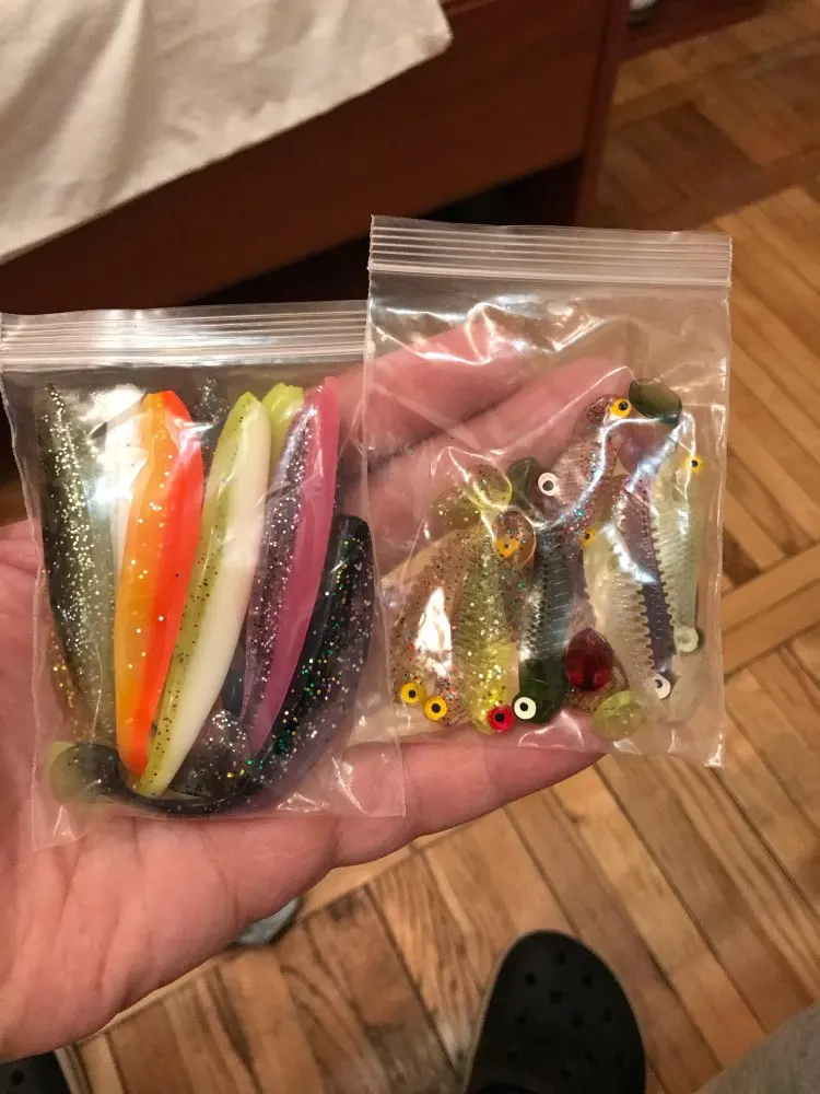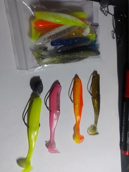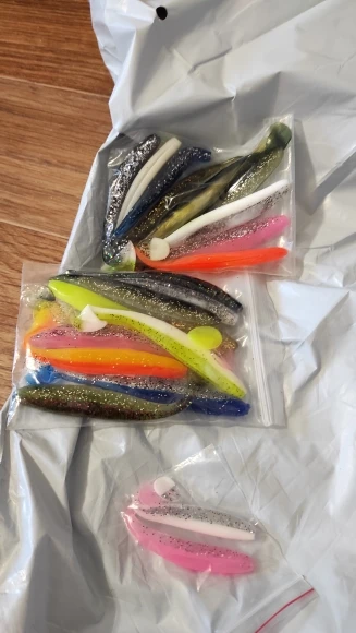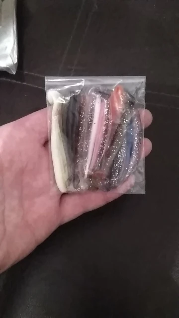 Очень качественный силикон, сверху и снизу прорези для офсетного крючка что не делают на дешёвых подделка. Опробую набор, какие будут лучше работать закажу ещё да по-больше, ведь не бывает, к сожалению, вечных силиконовых приманок, то рыбина сожрёт, не попавшись, то зацепишь за корягу последний самый уловистый хоть ныряй...