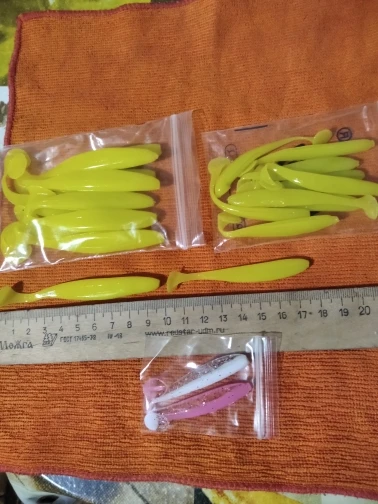 Не плохой силикон. Но приманки немного не соответствуют заявленным размерам. Брал в размере 70 мм, те ровно 70 мм, а те, которые 100 мм на самом деле 95 мм. Но в подарок продавец положил ещё две маленькие приманки по 70 мм. В целом рекомендую продавца и товар.