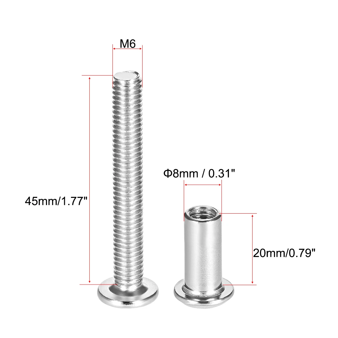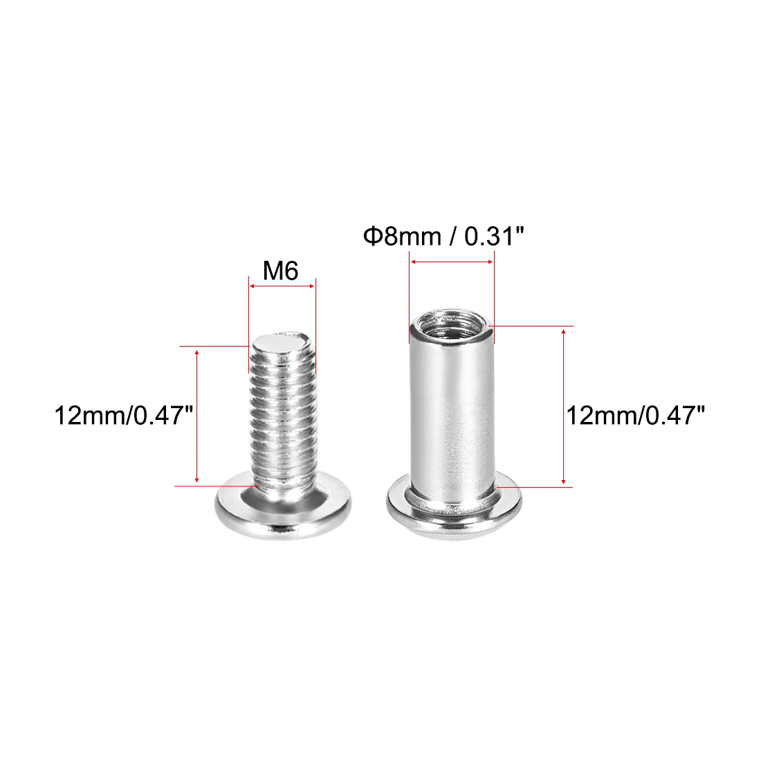 Особенности:Это кожаный пояс для скрапбукинга.Они отлично подходят для любых кожаных работ на заказ.Можно зафиксировать в концах ремня, пакет сумки фиксируется и украшение.Это также вид мебельной фурнитуры, в основном для комбинирования, подключения и фиксации шкафа/шкафа. Спецификация:Название продукта: винтовой столбМатериал: нержавеющая стальОсновной цвет: серебристыйДиаметр головки винта: 12,8 мм/0,5"Диаметр отверстия: 8 мм/0,31"Ширина шестигранного гнезда: 4 мм/0,16"Содержание упаковки: 5 комплектов x винтовой столб Примечание: для плотного прилегания отверстие должно быть равным или немного меньше диаметра штифта (немного меньше или равен 8 мм).