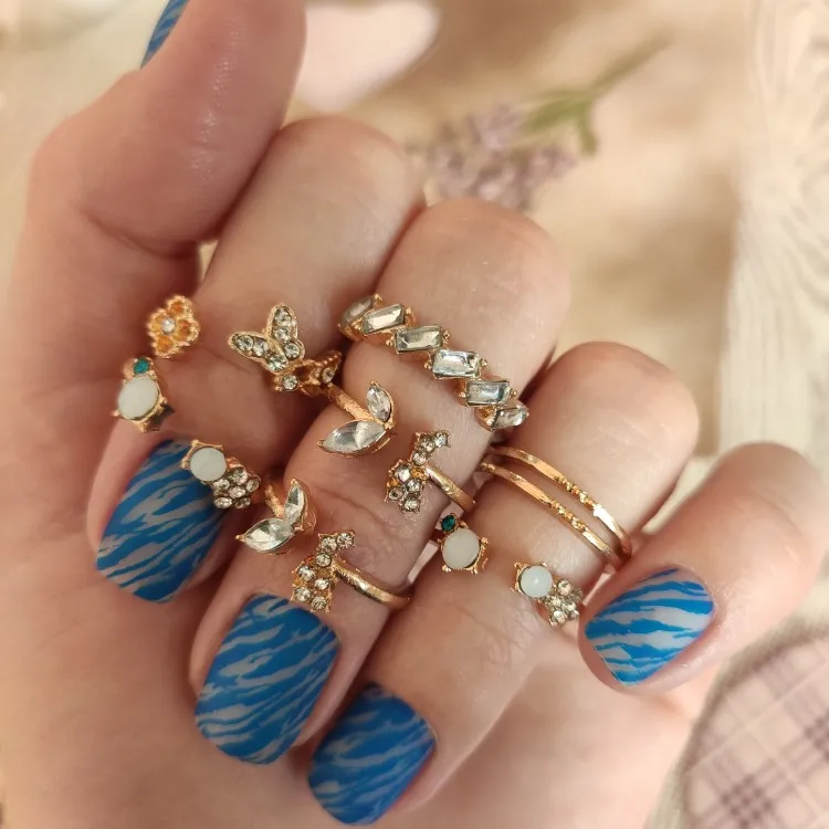 Комплект женских колец в стиле бохо с кристаллами, бабочкой, глазам...