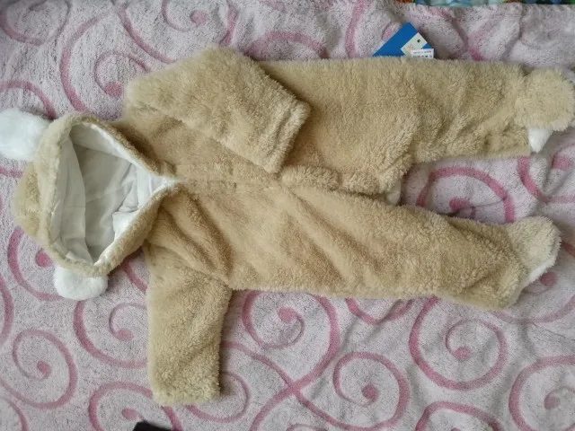 Очень красивый комбинезон-очень мягкий и приятный на ощупь. Я не обнаружила никаких неприятных запахов, и доставка в Австралию была около недели-я не ожидал, что это будет так быстро! Размер соответствует 74 российским размерам. В целом очень доволен этой покупкой!
