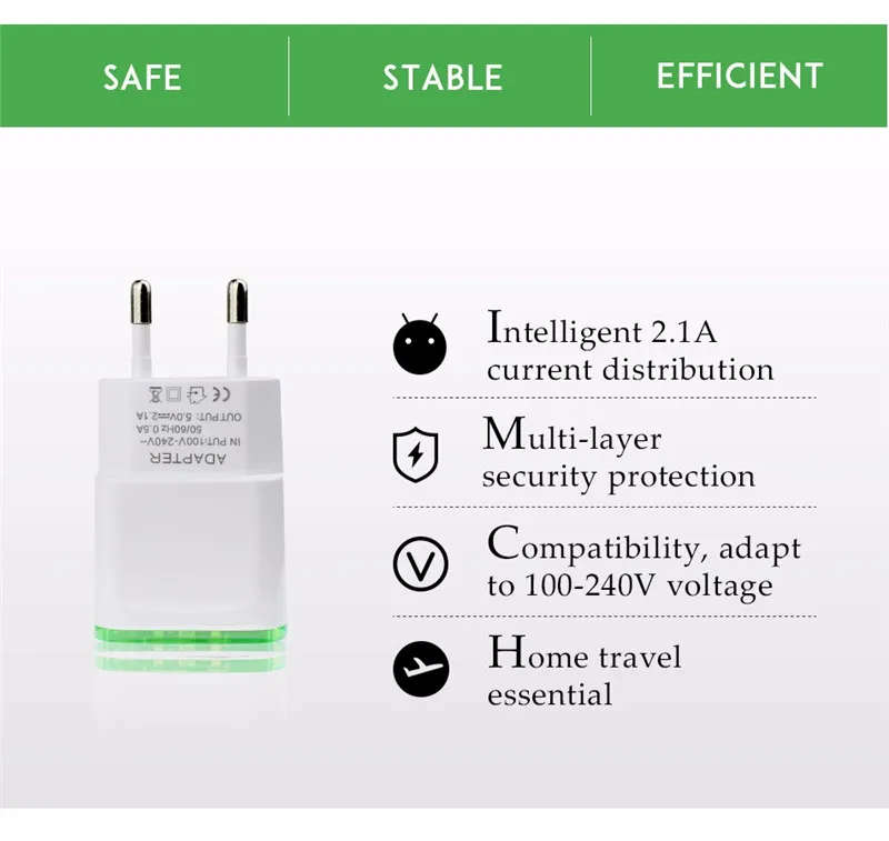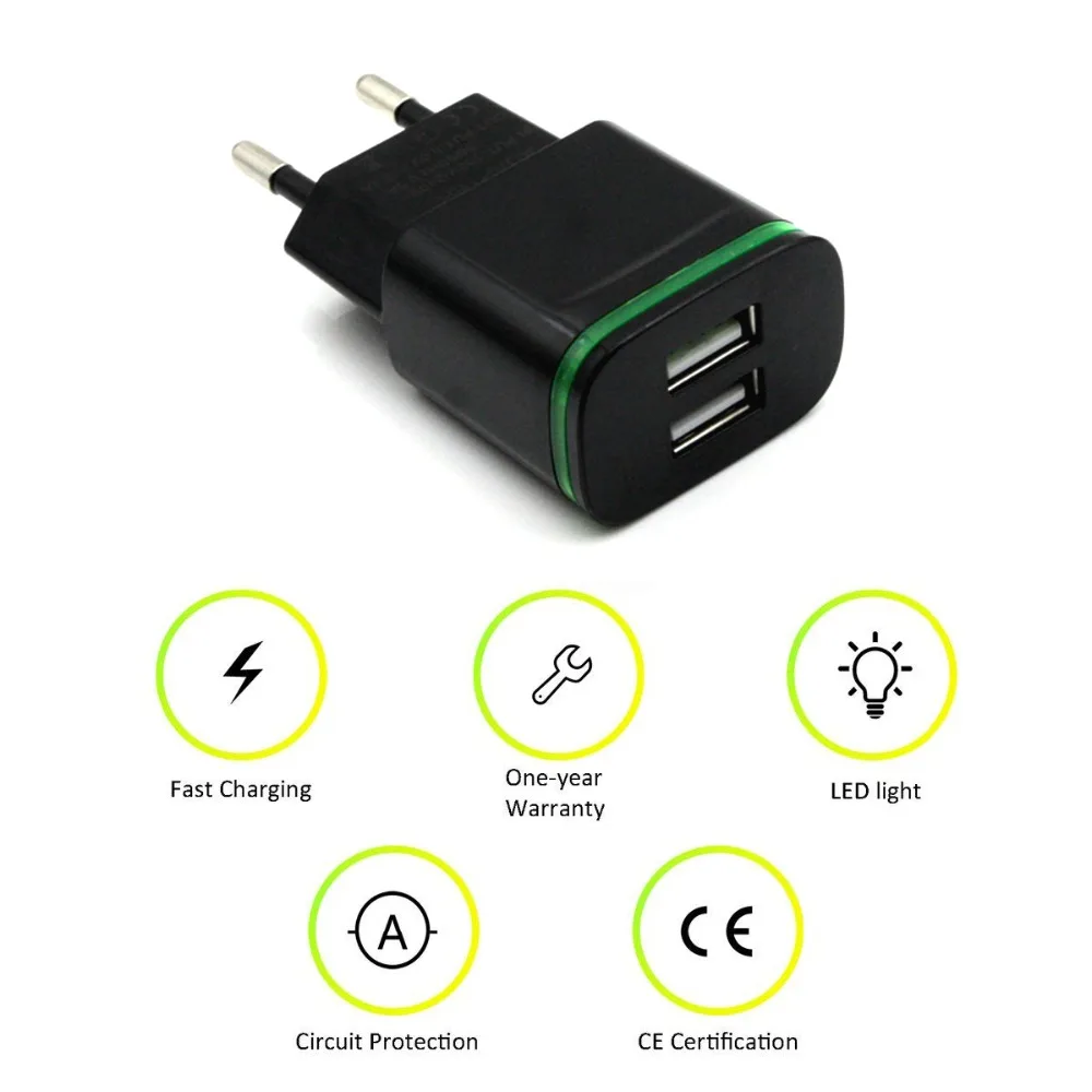 Зарядный USB-кабель с 2 портами для iphone xs max 5 6 xr, светодиодный светильник, Европейское переходное зарядное устройство для sony htc nokia 7 7,1 5,1 6,1 plus 8,1