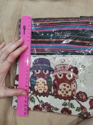 Сумочка гобеленовая замечательная! Достаточно яркая,чтобы быть веселой, но при этом достаточно сдержанная,чтобы ко всему подходить). Размер тоже замечательный! ремешок длинный, отлично носить и через плечо,регулируется. Рост у меня 175 см, так что уж не знаю,кому он может показаться коротким - сумка на бедре,идеально. Доставка месяц до Хабаровска, отслеживалась. Очень понравилось. Найду другие рисунки, закажу ещё