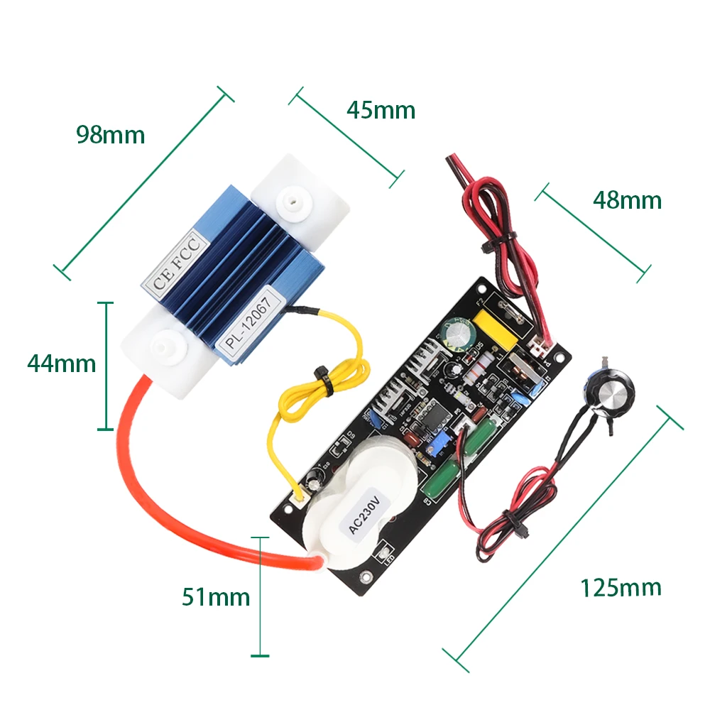 Вы можете использовать длинные винты для установки блока питания озона (источник питания озона, печатная плата) подальше от озоновой трубки (металлический корпус или другие электрические приборы) более 2 см. (Спереди, сзади, слева, справа, вверх, вниз)