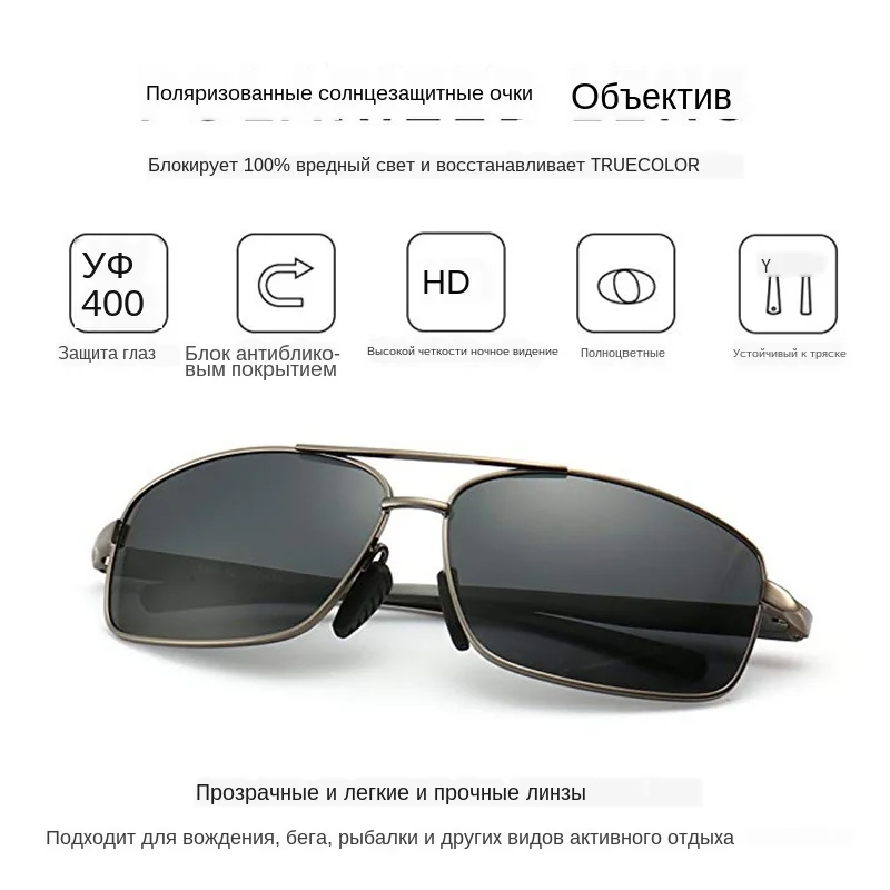 Мужские прямоугольные солнцезащитные очки AORON, Классические солнцезащитные очки в алюминиевой оправе, Поляризованные, в стиле ретро, UV400
