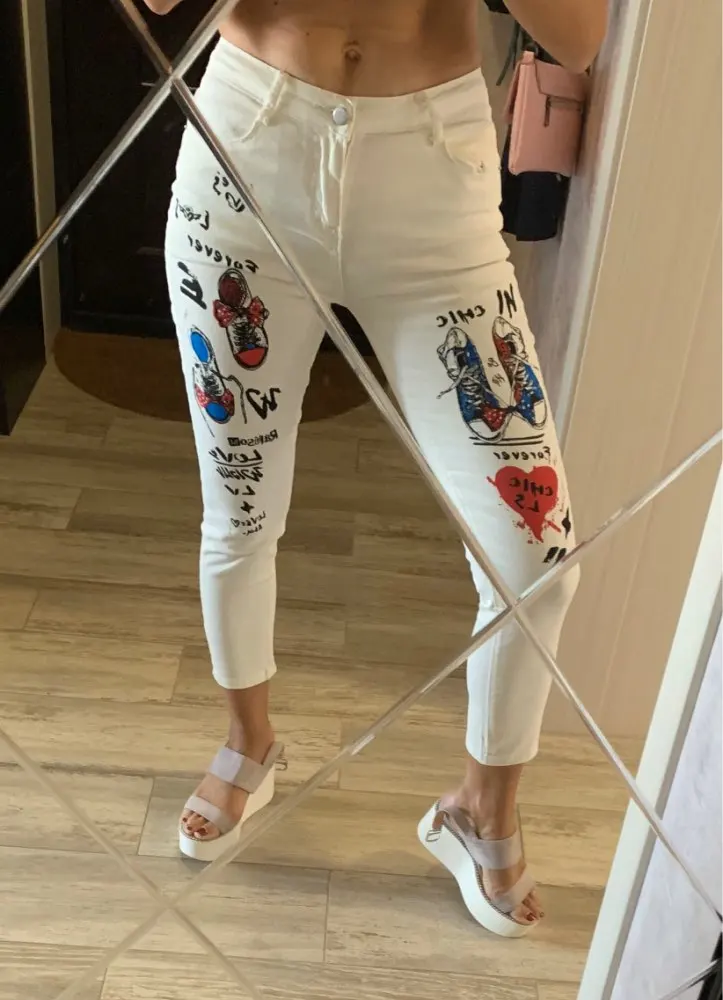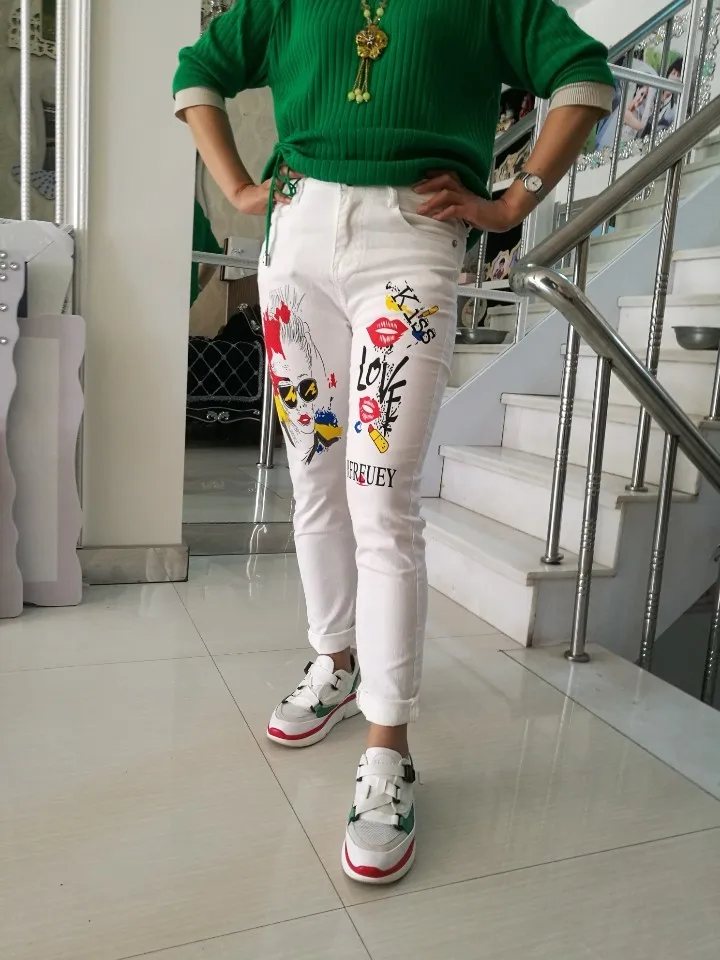 Женские джинсы-карандаш, зауженные эластичные джинсы с принтом в виде граффити, Капри, модель NZ60 на лето и весну