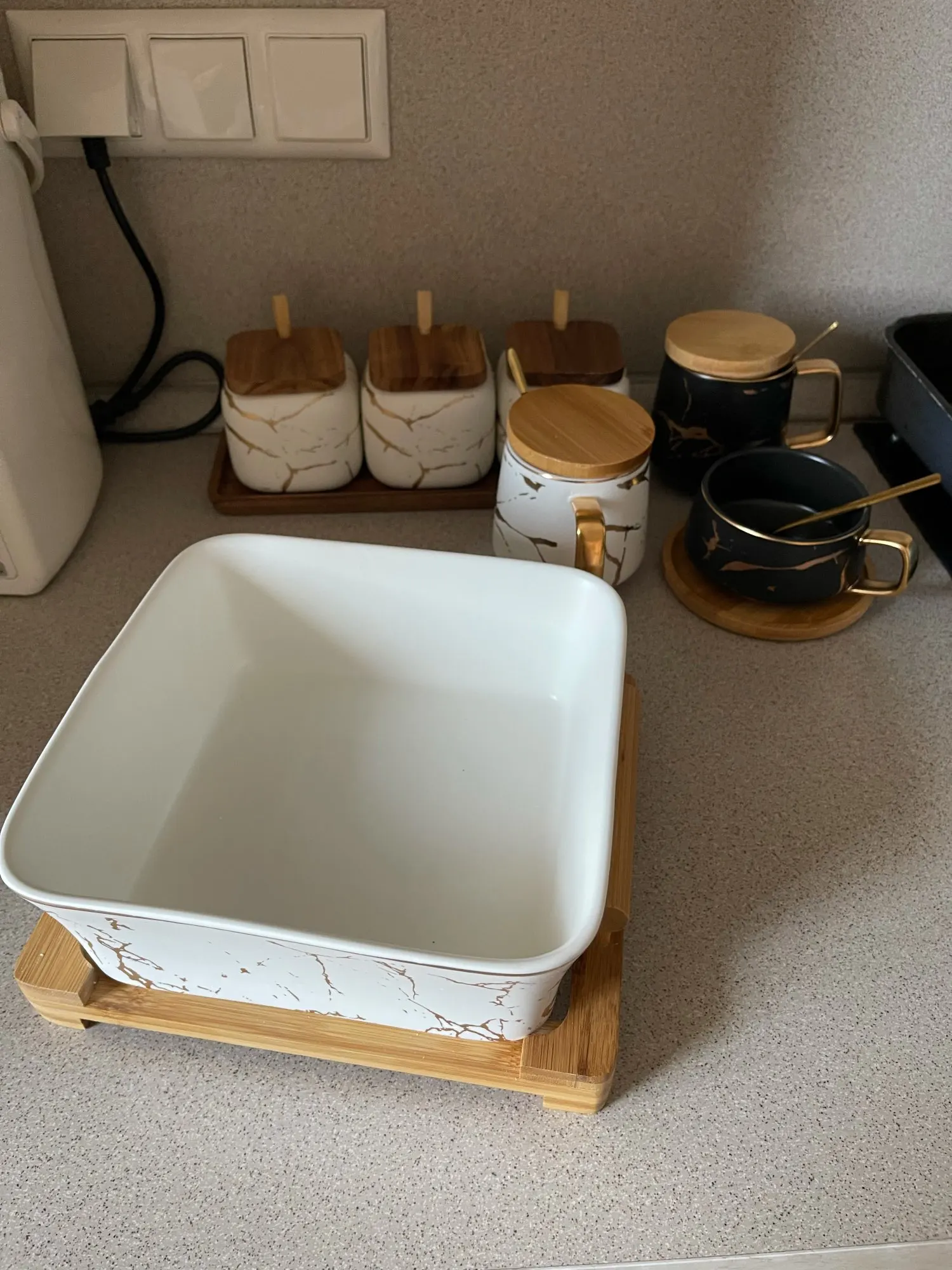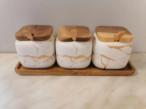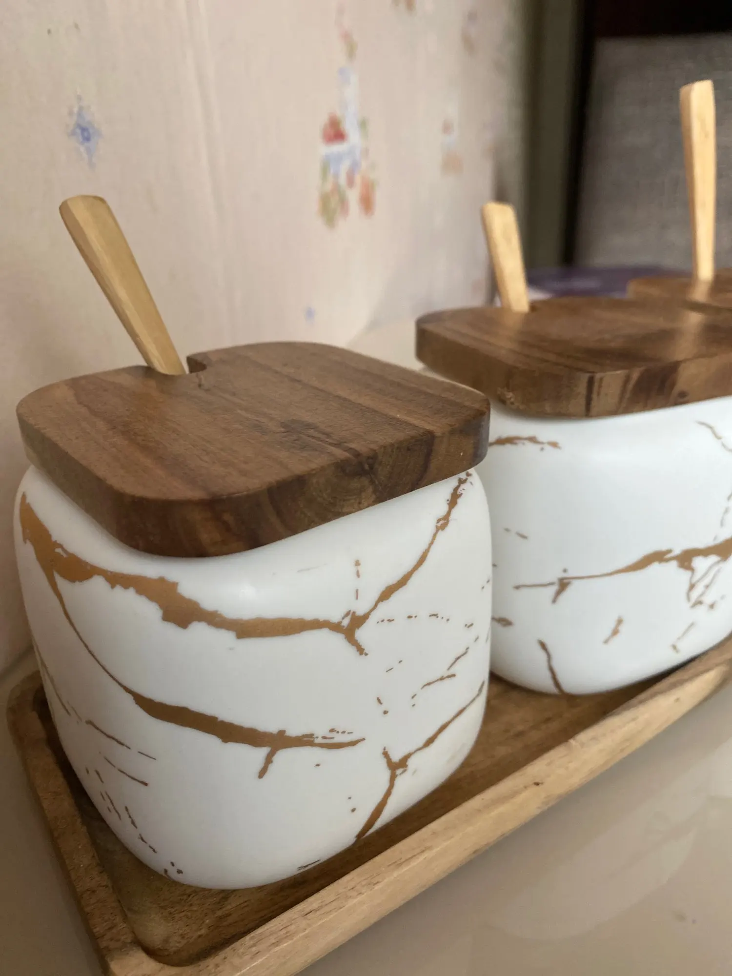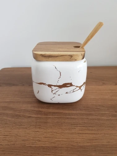 Набор керамических емкостей для приправ в скандинавском стиле с мраморным узором, деревянная крышка, солонка для специй, аксессуары для кухни