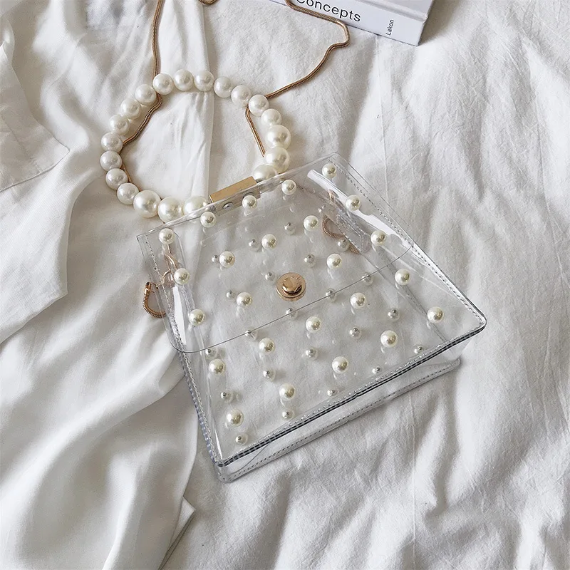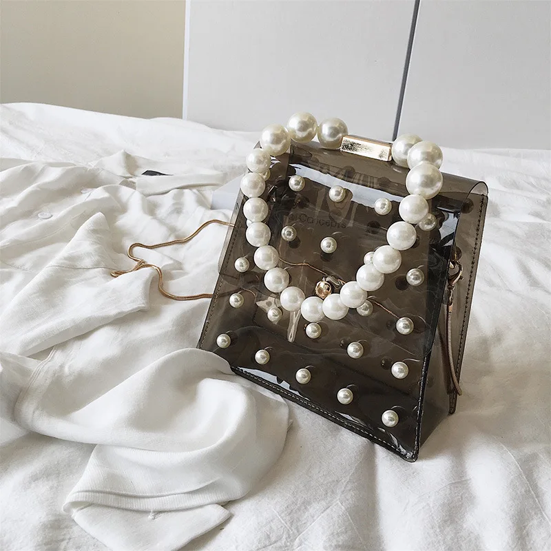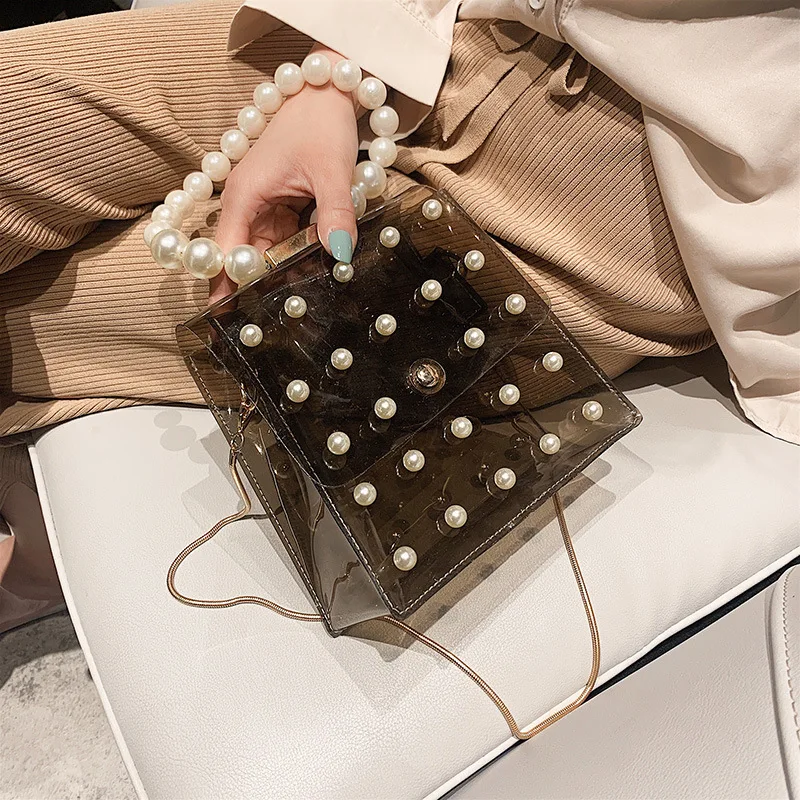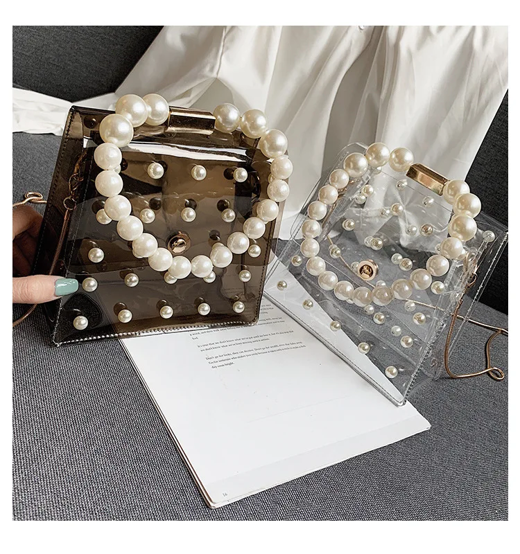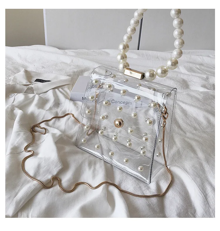 Прозрачная женская сумка-мессенджер, сумка на плечо с жемчужной цепочкой, сумка через плечо, мини-Желейная сумка, 2019