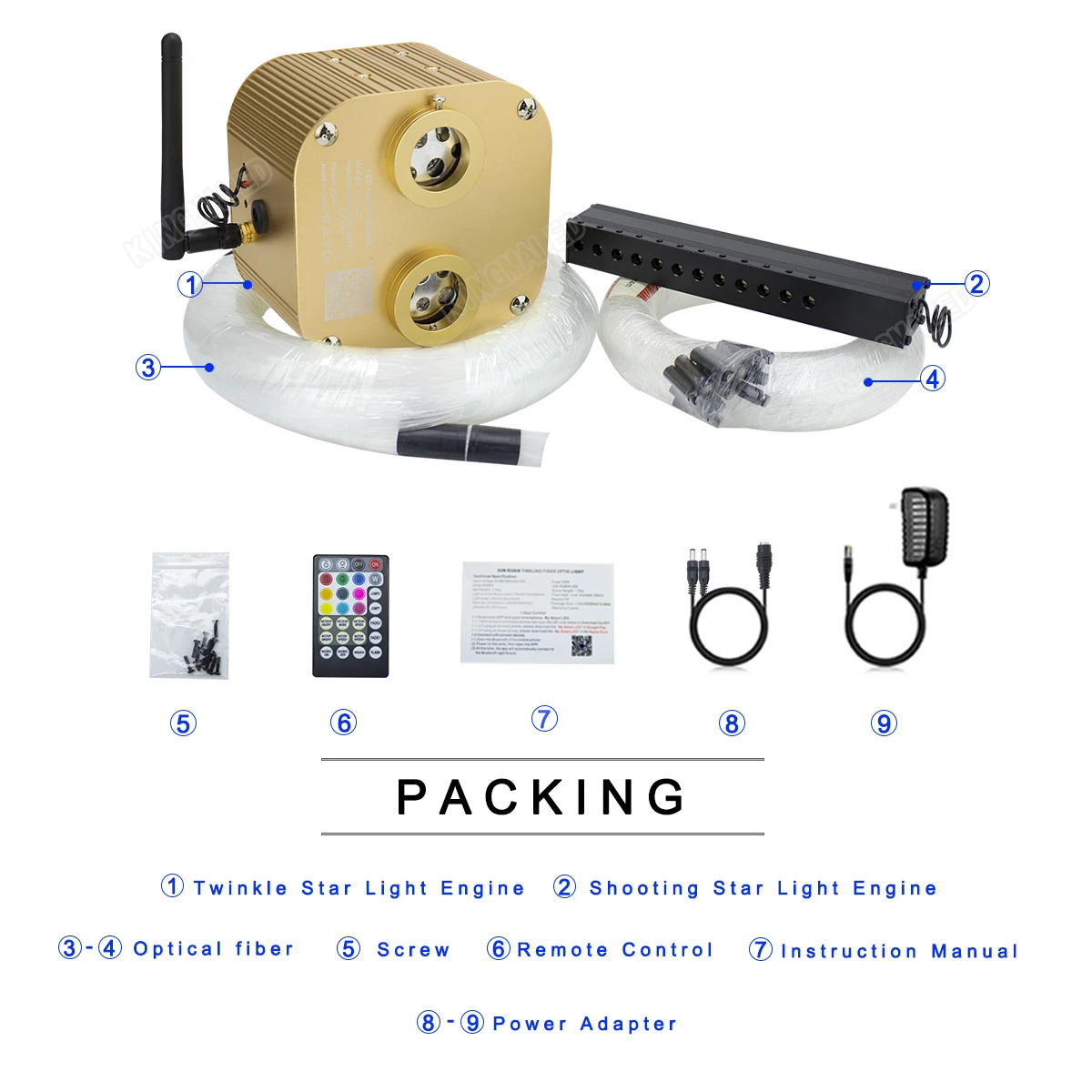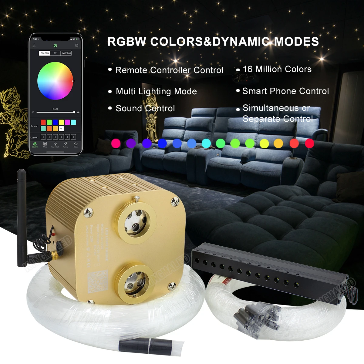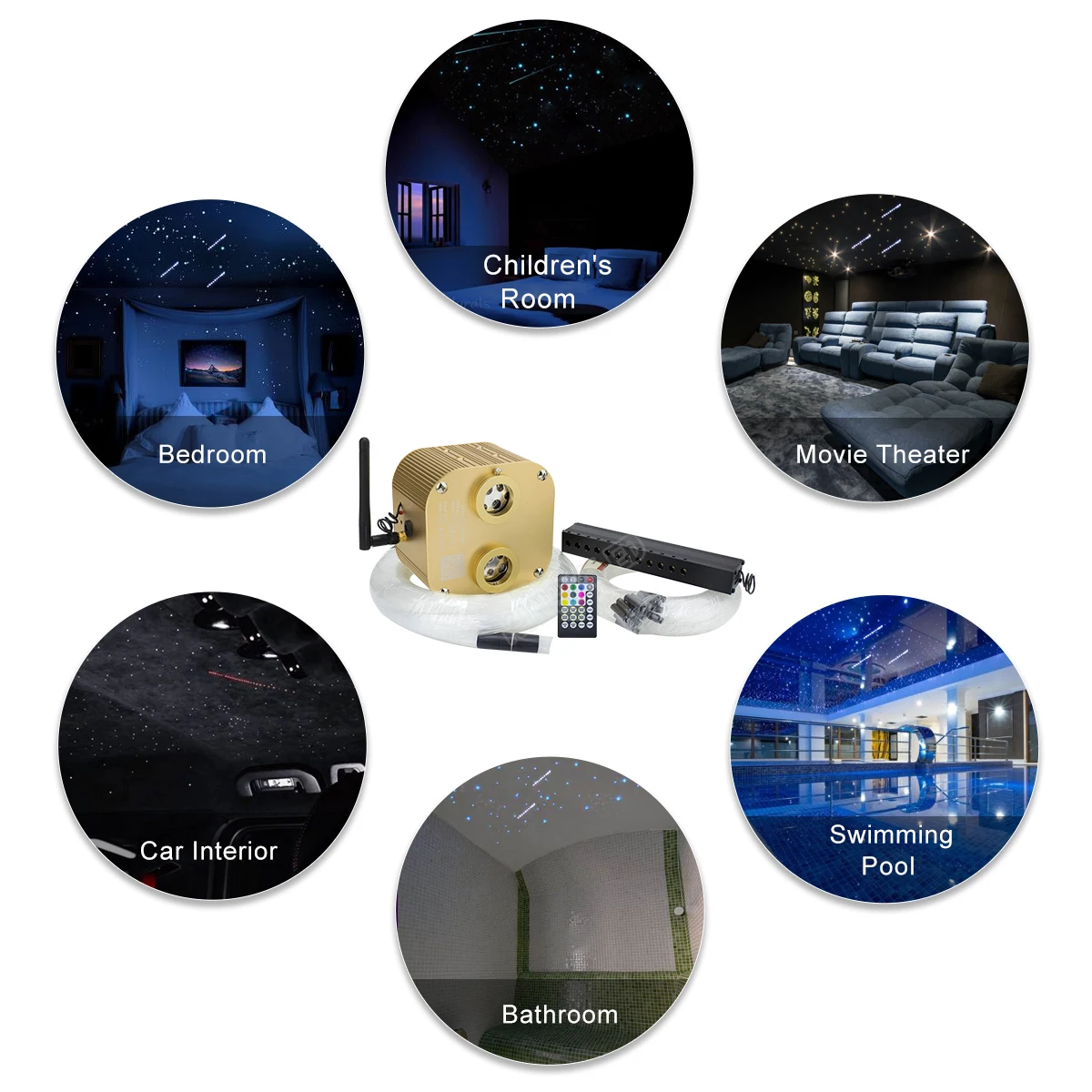 20 Вт RGBW мерцание оптоволоконный светильник s Bluetooth APP Управление потолочный светодиодный светильник комплект и формирующая листы для кровли 4 м съемки Метеор эффект RF пульт дистанционного управления Управление;