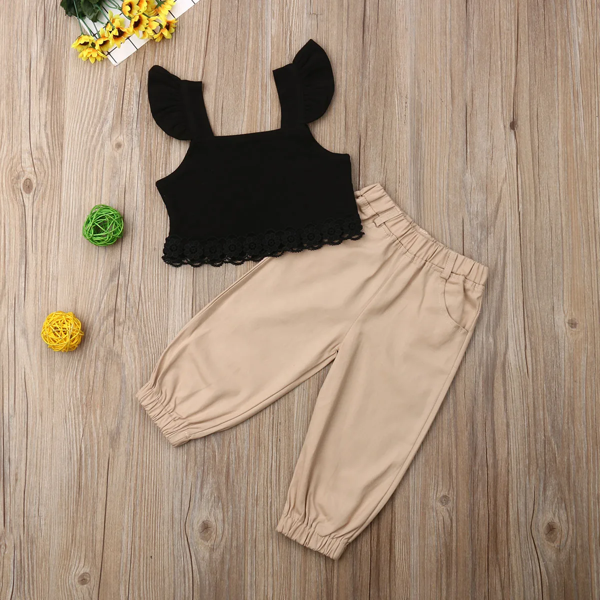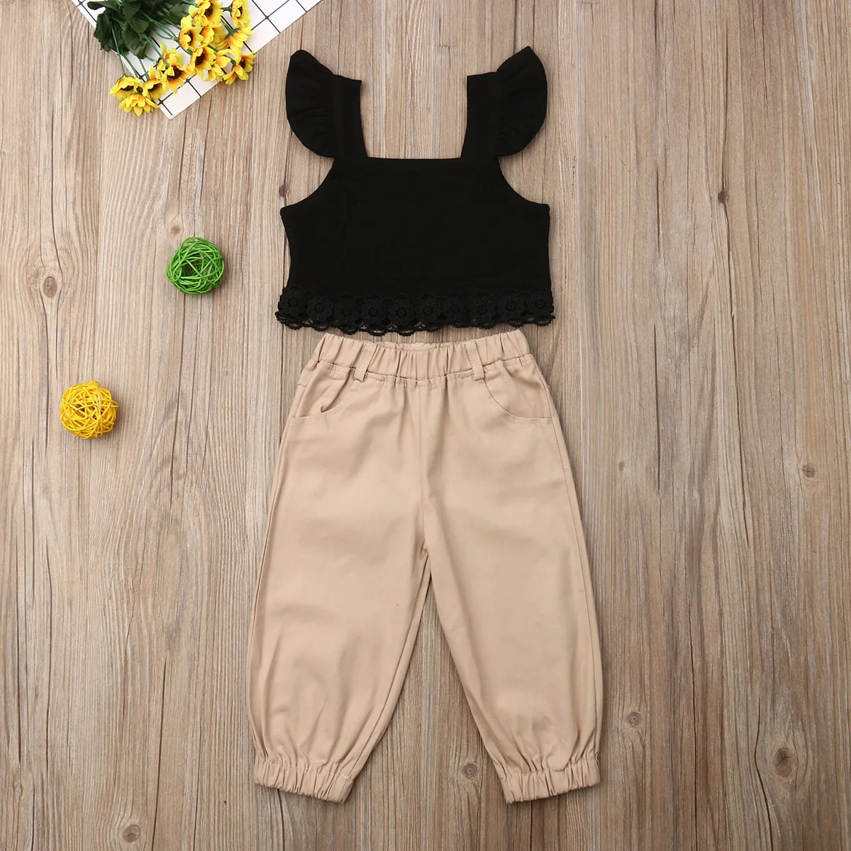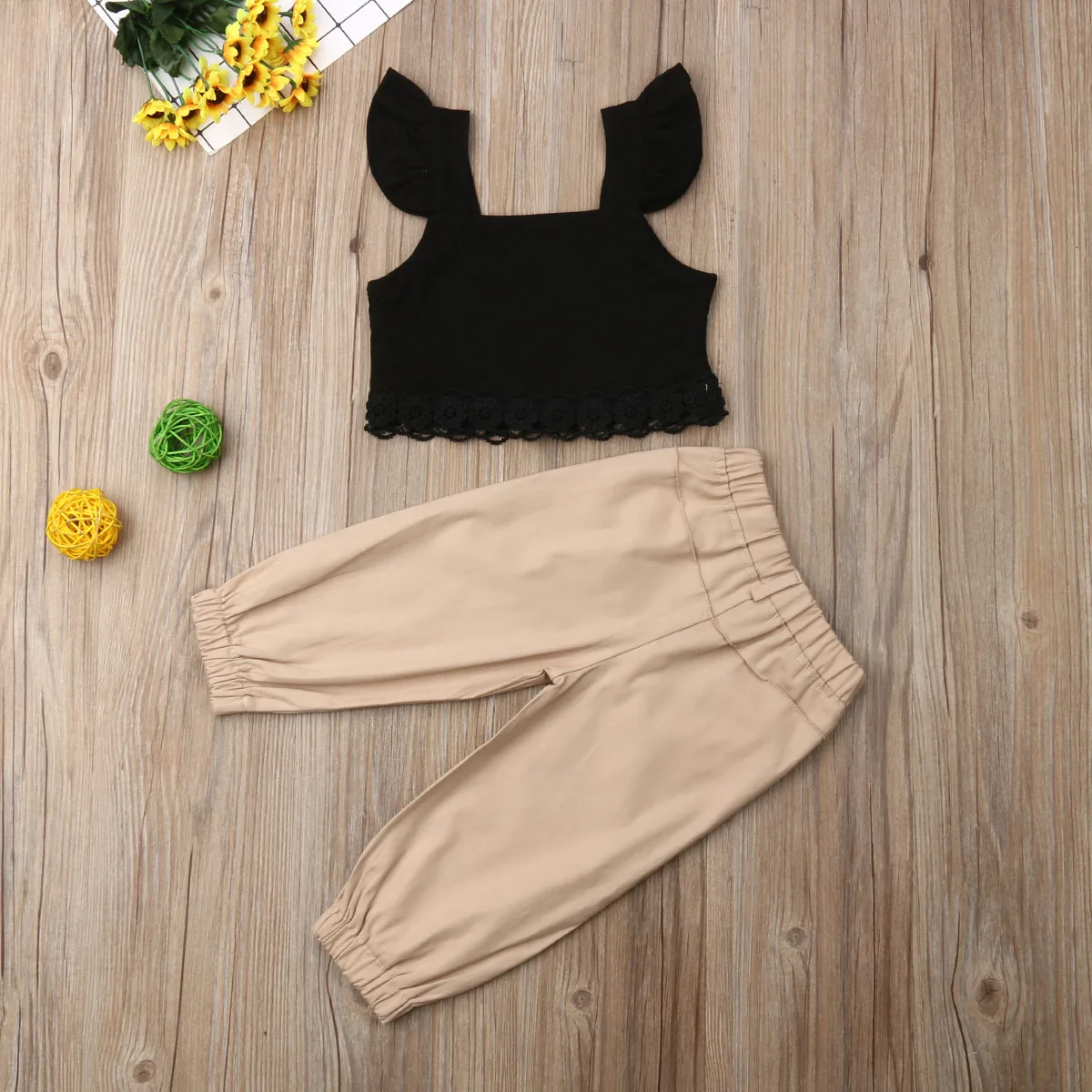 Комплект из 2 предметов Pudcoco, летняя одежда для маленьких девочек, укороченный топ с широкими рукавами, повседневные длинные штаны