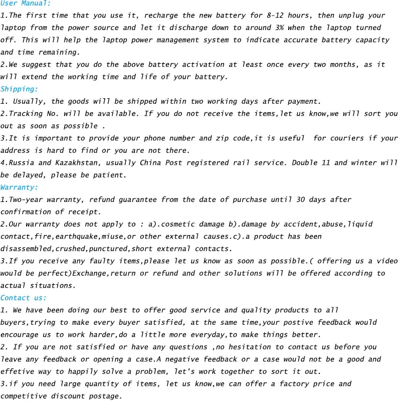 Запасная часть номера: AA-PB9NC5B AA-PB9NC6B AA-PB9NC6W AA-PB9NC6W/E AA-PB9NS6B AA-PB9NS6W AA-PL9NC2B AA-PL9NC6B AA-PL9NC6W Подходит для моделей: R780, R730, R728, R720, R718, R700, R620, R580, R560, R540, R522H, R522, R520H, R520, R519, R518H, R518, R517, R507, R480, R478, R470H, R470, R469, R468H, R468DS03, R468, R467, R466, R465H, R465, R464, R463H, R463, R462, R460, R458R, R458, R453, R440, R430, R429, R428, R420, R418, R410, R408, Для huawei P Series P560, P510, P480, P469, P467, P461, P460, P459, P46, P50, P60, P70, P410, P408, P210, Для SAMSUNG NP-P серии NP-P408 NP-P410 NP-P459 NP-P460 NP-P461 NP-P467 NP-P469 NP-P480 NP-P510 NP-P560 NP-P70 NP-P210 NP-P408 NP-P410 NP-P459 NP-P460 NP-P461 NP-P467 NP-P469 NP-P480 NP-P510 NP-P560 Для SAMSUNG NP-R серии NP-R408 NP-R410 NP-R423 NP-R428 NP-R429 NP-R430 NP-R439 NP-R440 NP-R458 NP-R460 NP-R462 NP-R463 NP-R464 NP-R465 NP-R466 NP-R467 NP-R468 NP-R470 NP-R478 NP-R480 NP-R505 NP-R507 NP-R509 NP-R510 NP-R518 NP-R520 NP-R522 NP-R530 NP-R560 NP-R580 NP-R590 NP-R620 NP-R700 NP-R718 NP-R720 NP-R728 NP-R730 NP-R780 NP-R428 NP-R429 NP-R430 NP-R439 NP-R440 NP-R458 NP-R460 NP-R462 NP-R463 NP-R464 NP-R465 NP-R466 NP-R467 NP-R468 NP-R470 NP-R478 NP-R480 NP-R505 NP-R507 NP-R509 NP-R510 NP-R518 NP-R520 NP-R522 NP-R530 NP-R560 NP-R580 NP-R590 NP-R620 NP-R700 NP-R718 NP-R720 NP-R728 NP-R730 NP-R780 Для SAMSUNG RV серии RV408 RV410 RV508 RV510 NP-RV серии NP-RV408 NP-RV410 NP-RV508 NP-RV510 NT-P серии NT-P408 NT-P410 NT-P459 NT-P460 NT-P461 NT-P467 NT-P469 NT-P480 NT-P510 NT-P560 NT-R серии NT-R408 Вот неполный список. Если номер части вашего старого аккумулятора и модели ноутбука не включены, свяжитесь с нами.