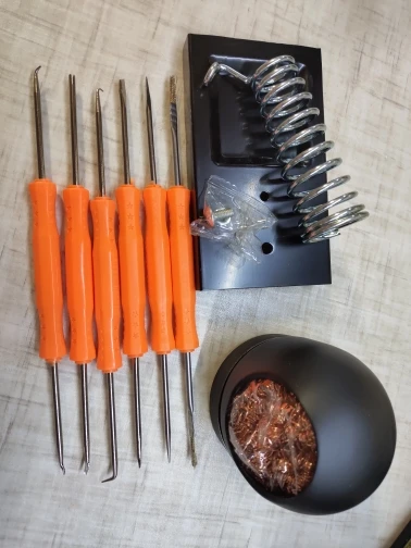 Губку вообще не положил. Продавец нехороший. Вешает лапшу на уши. Не стал бы больше связываться. Брал у него паяльник - дал левый трек, потом кормил завтраками "отправлю, отправлю", в итоге в то время когда я его должен был получить он всеещё в Китае был. Взял у него дала медные - все разной толщины и с разным внутренним диаметром на 1-1,5мм больше чем нагреватель.