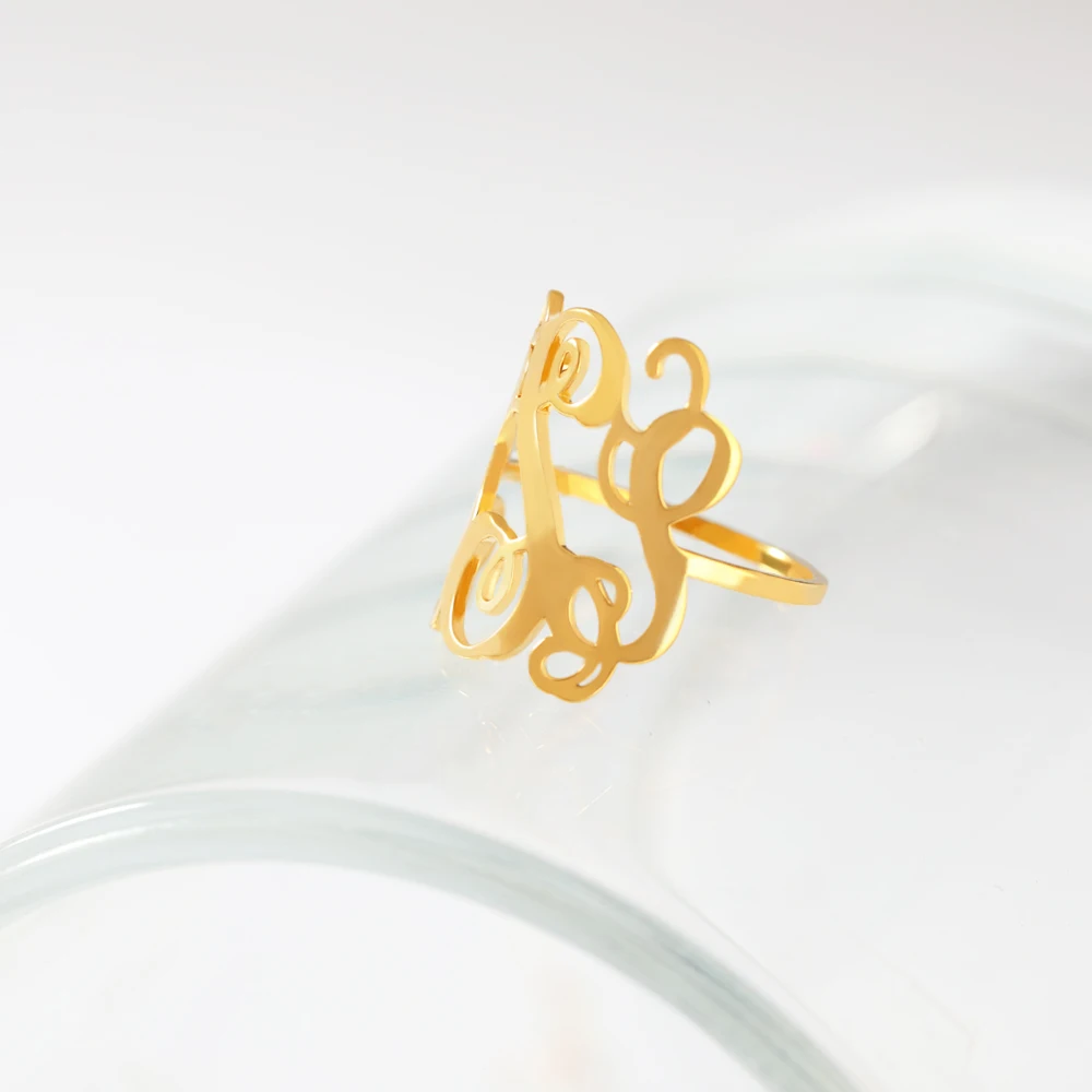 Кольцо с инициалами, золотое, винтажное, готическое, кольца с буквами