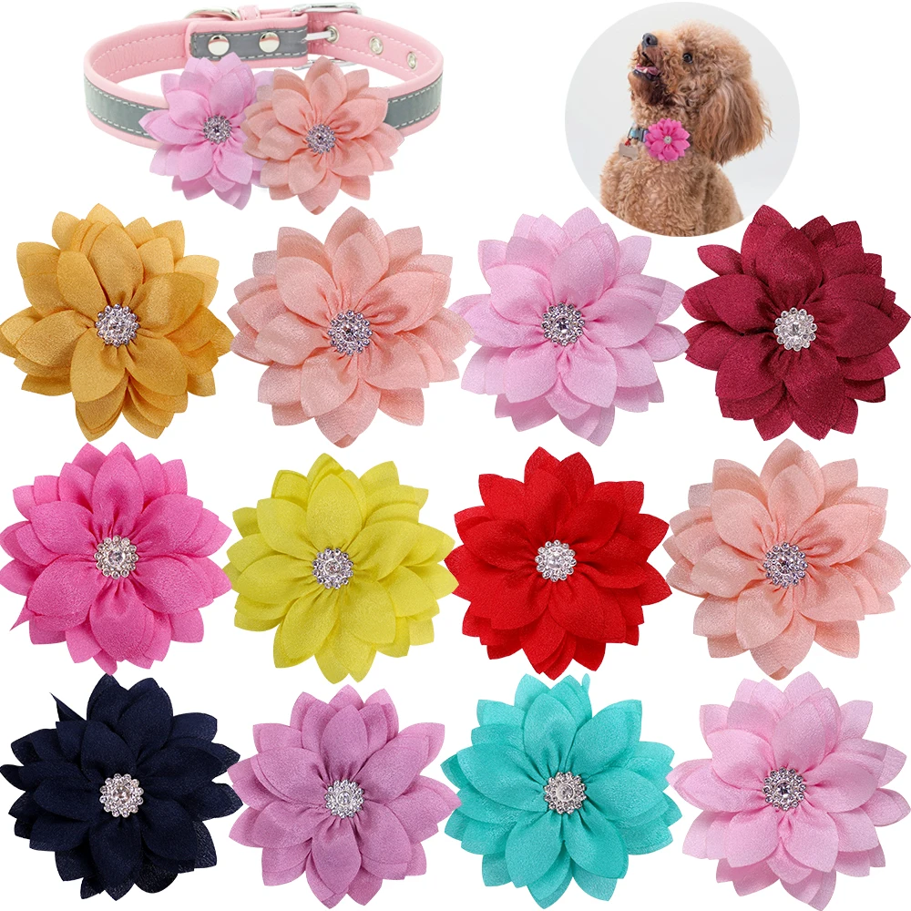 30 шт Pet Flower-шармы воротника Стразы воротник украшения сдвижная для питомца собаки ошейник для кота и бантом, аксессуары для собак