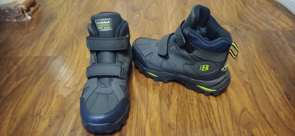 Сегодня получила кроссовки Бона, замечательная обувь! Теплая, не скользящая, полностью соответствует таблице размеров, размещенной в заказе, на свои 22 см стопы взяла 36 размер, подошли. Упакованы были очень аккуратно, продавец - Профи, всем рекомендую покупать у него!!!