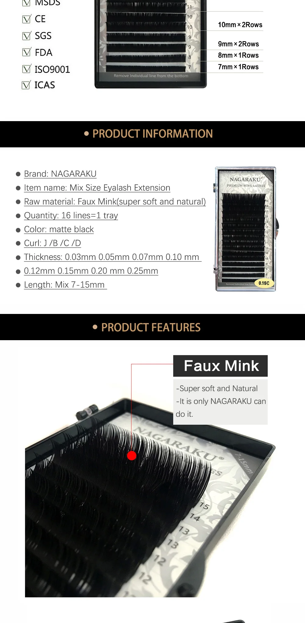 Страна: MX Length: 7 to 15 mm Curl: C Thickness: 0.15MM Доставка: Standard Shipping 09.01.2021