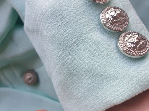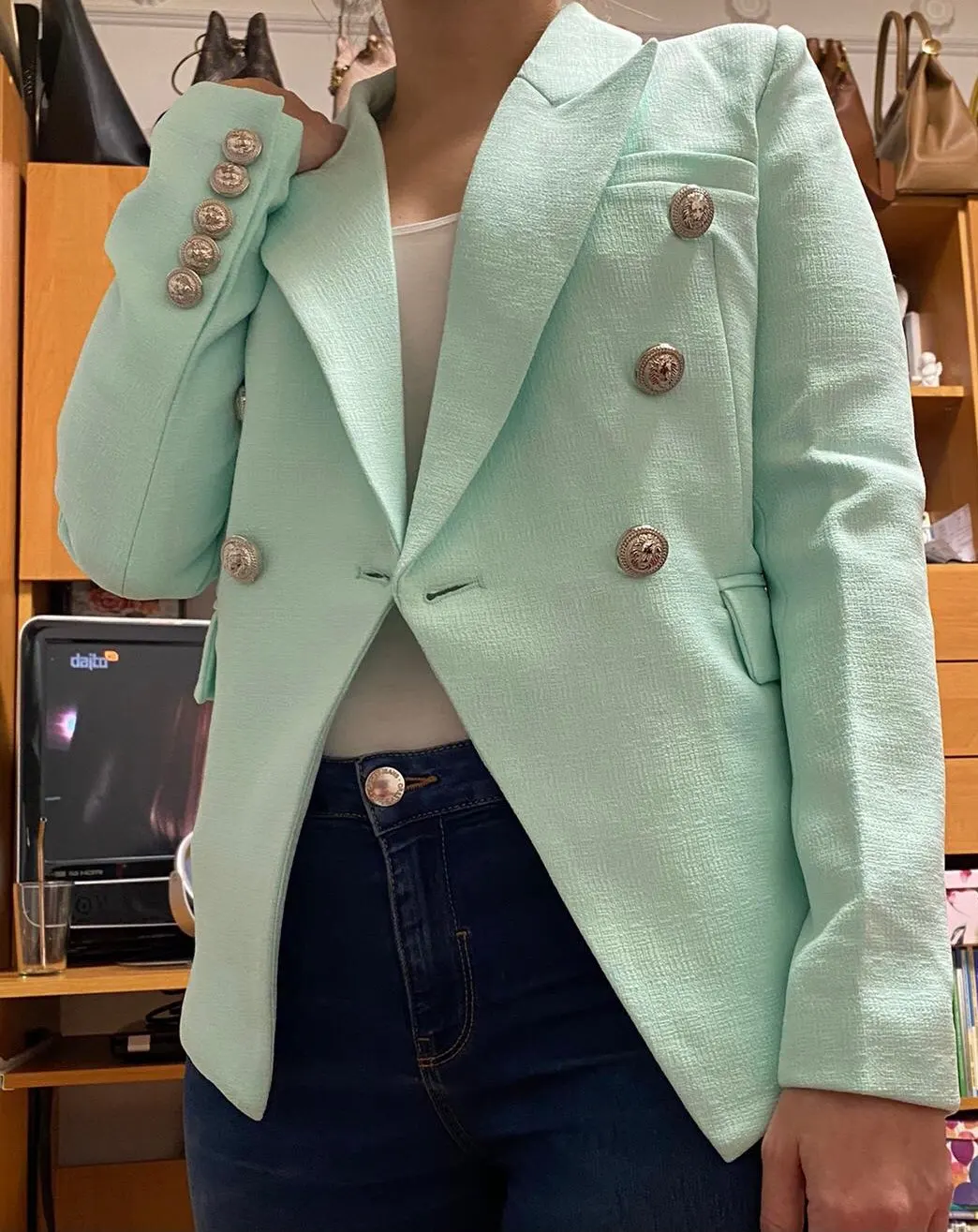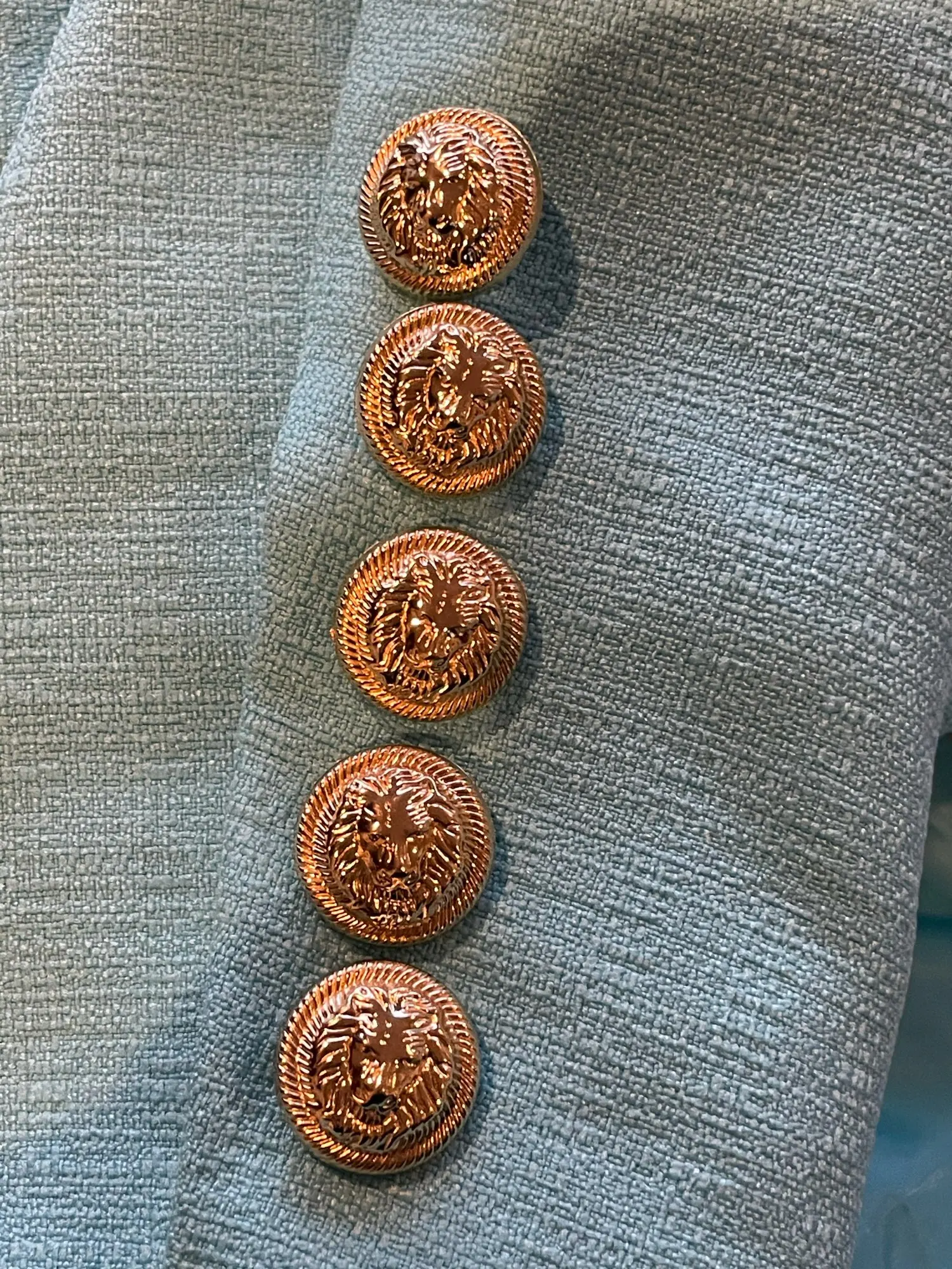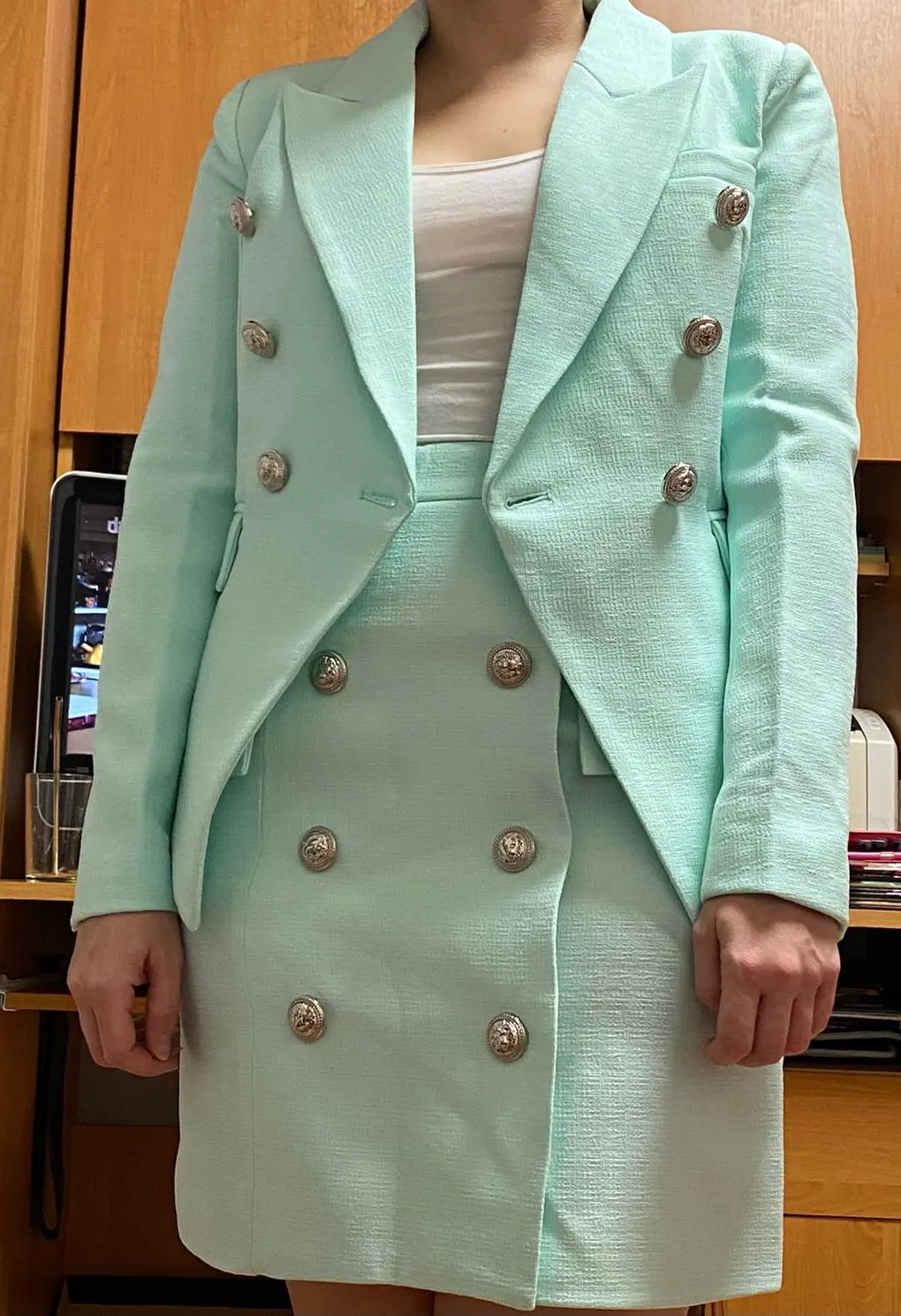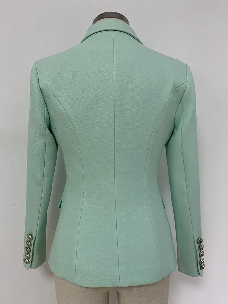 Женский двубортный блейзер в стиле барокко, мятно-зеленый классический блейзер с металлическими пуговицами в форме льва, дизайнерский блейзер в стиле барокко, 2022