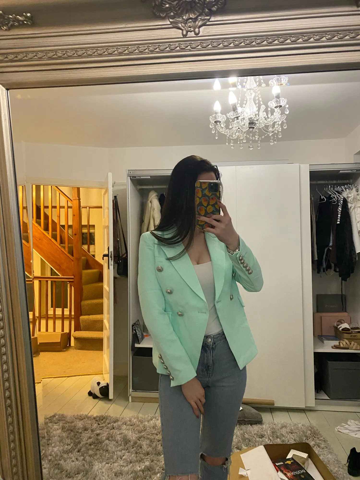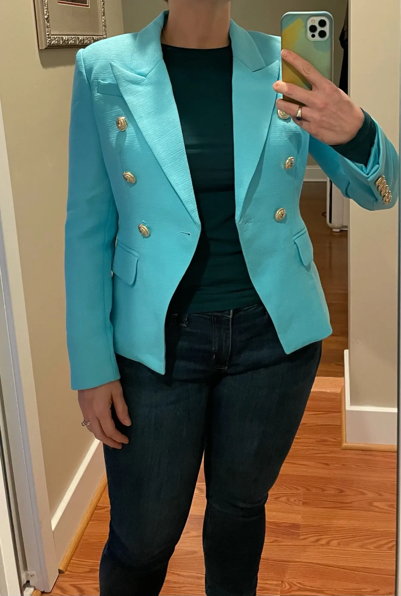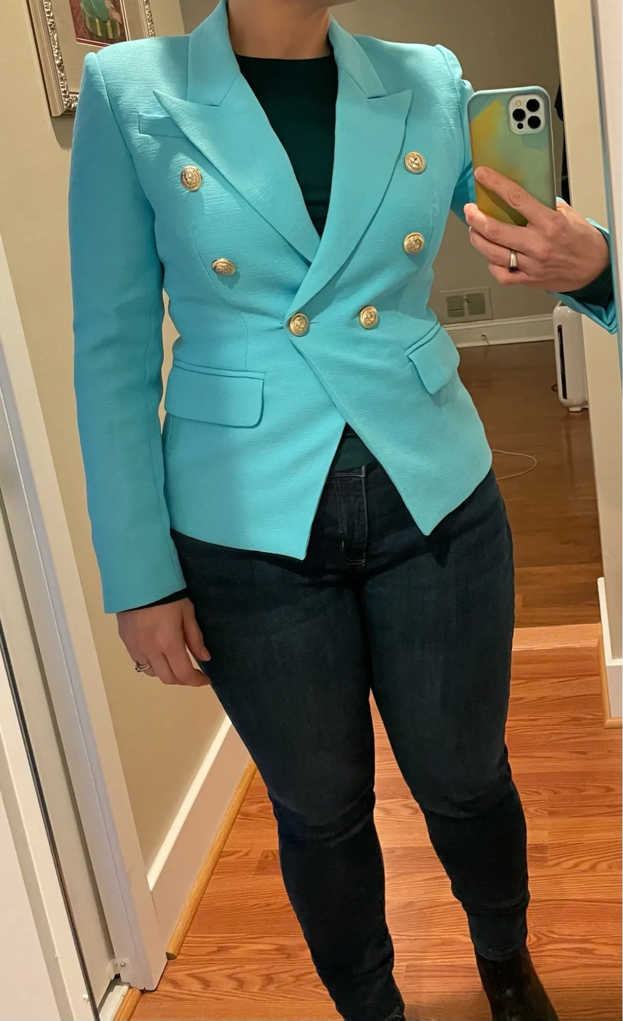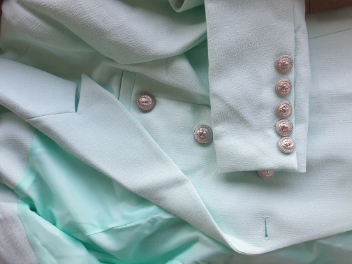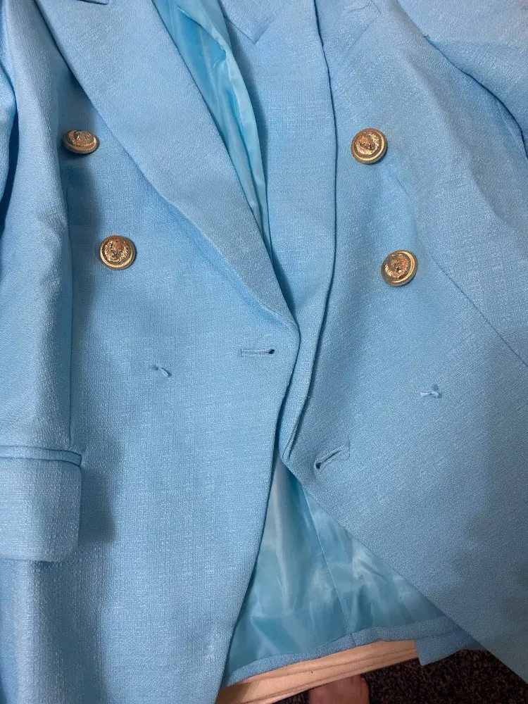 Красивый Блейзер, однако пуговицы выпадут, как только я открываю упаковку. Также он очень маленький